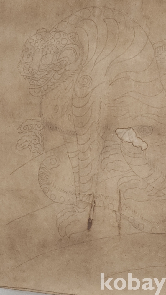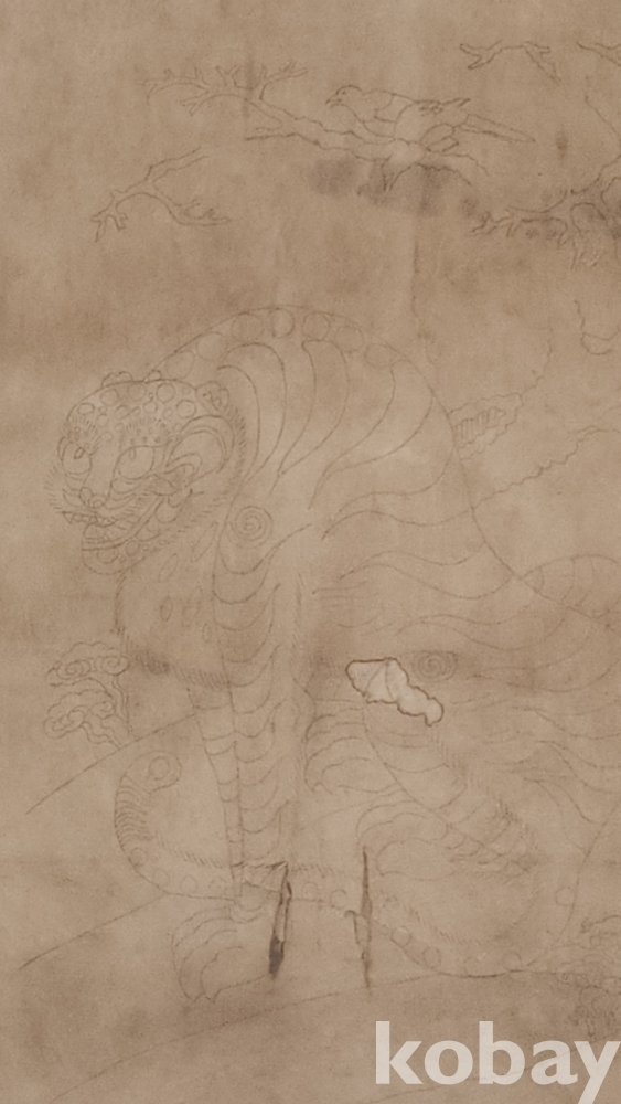 두터운 종이에 소나무와 까치 호랑이 (松虎) 그림입니다,