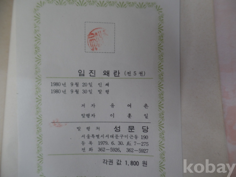 임진왜란,,,,1--5권완결 ,,하드카바,,,유여촌 지음,,,성문당 발행,,,,80년