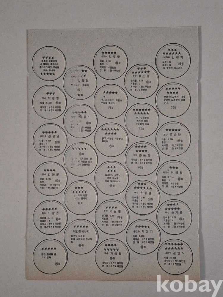 1983년 초창기 프로야구 딱지로