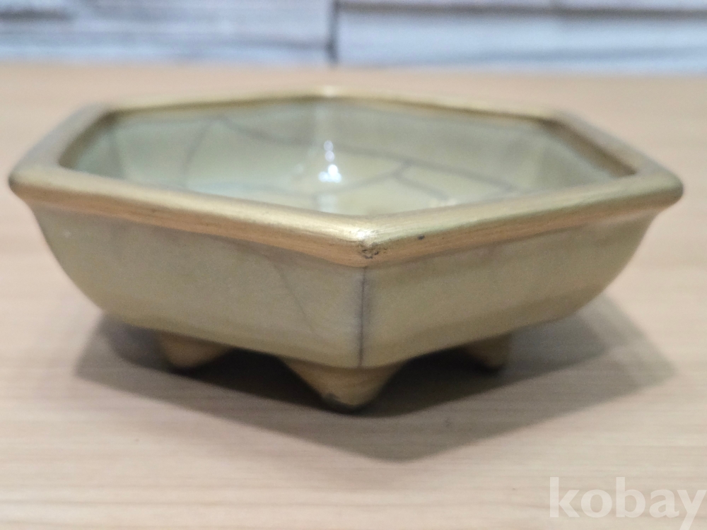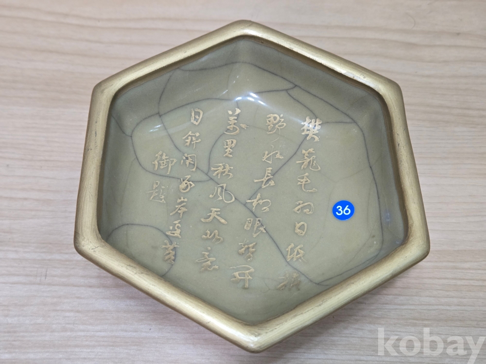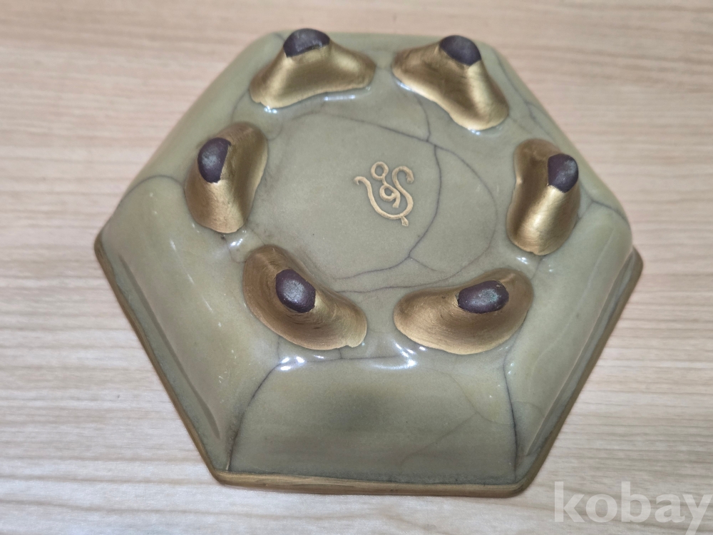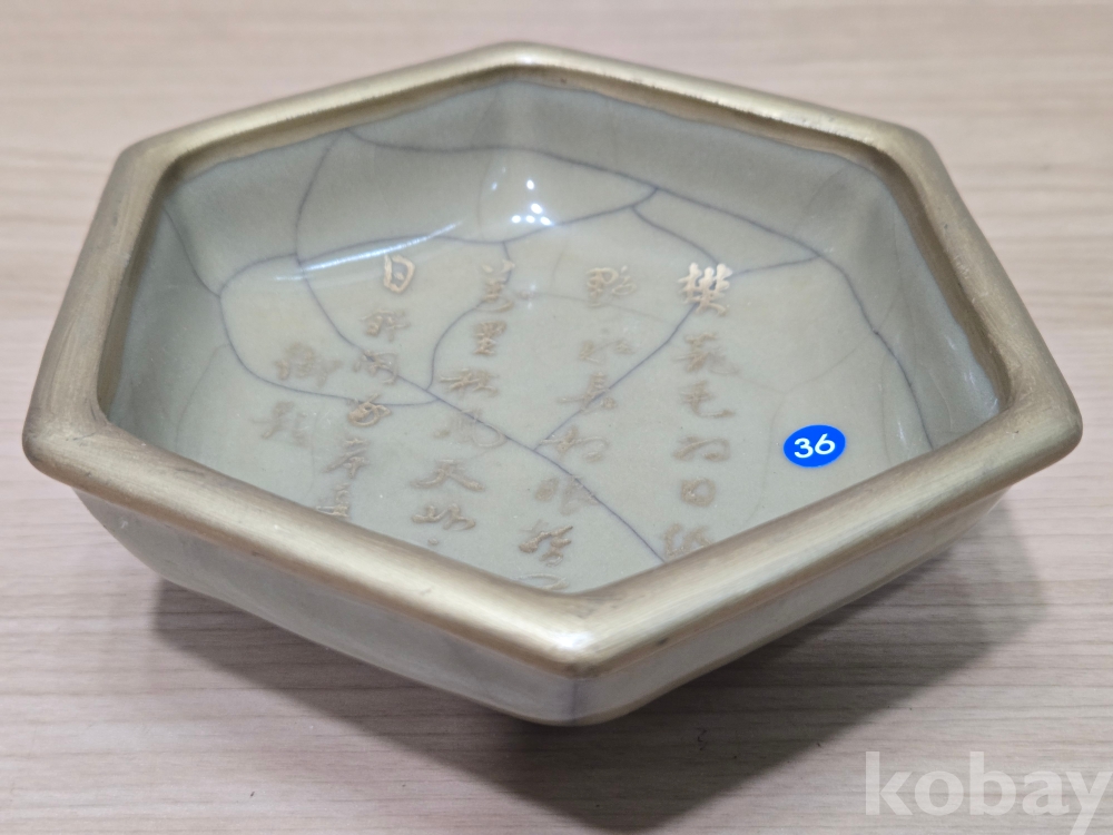 안쪽으로 글씨가 있는 6각 필새 도자기 입니다.
