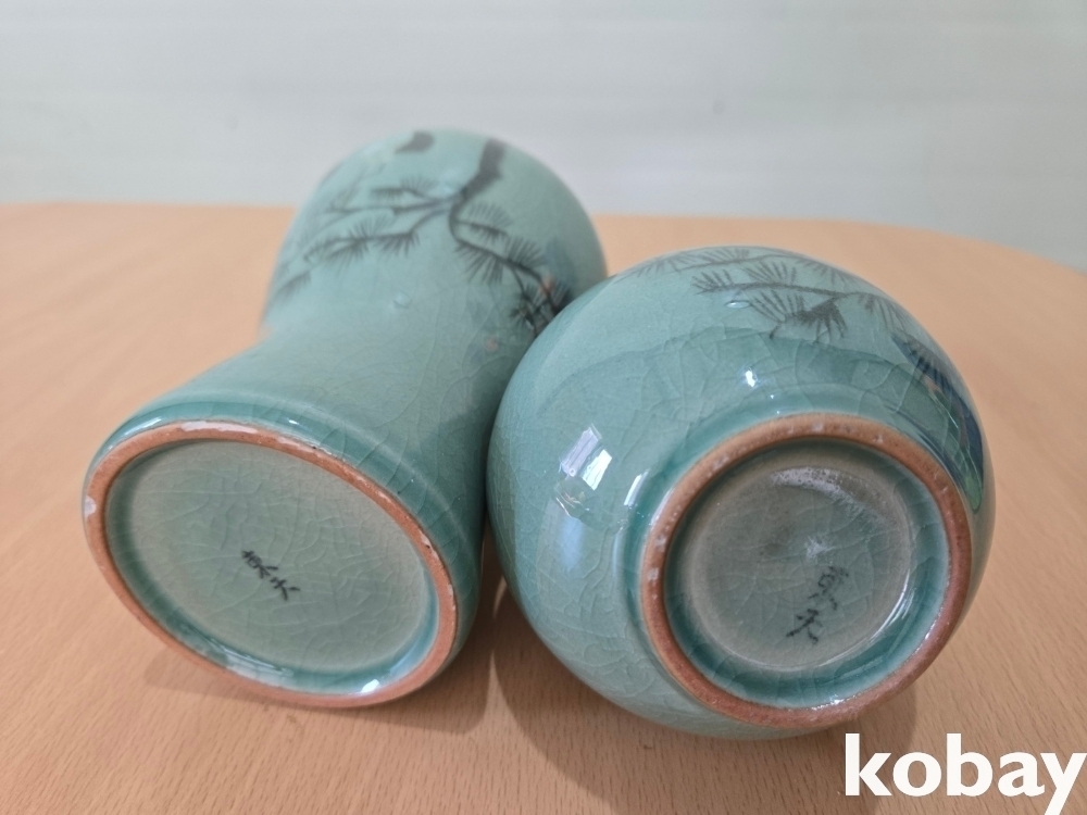 소나무에 학 표현 매병, 주병 도자기 셋트 입니다.