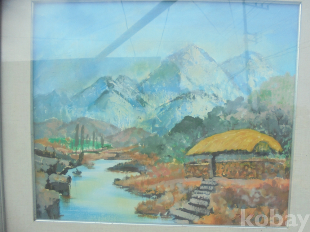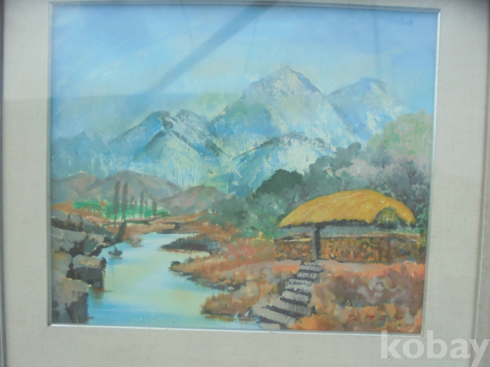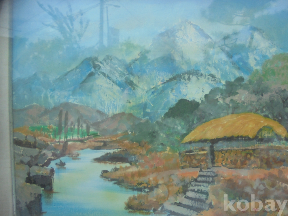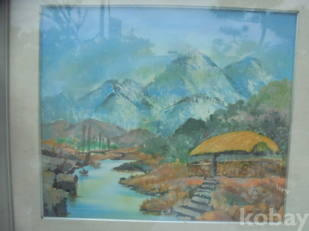 한국액자유화그림작품 ㅡ3 ㅡ김영교,초가집겨울풍경