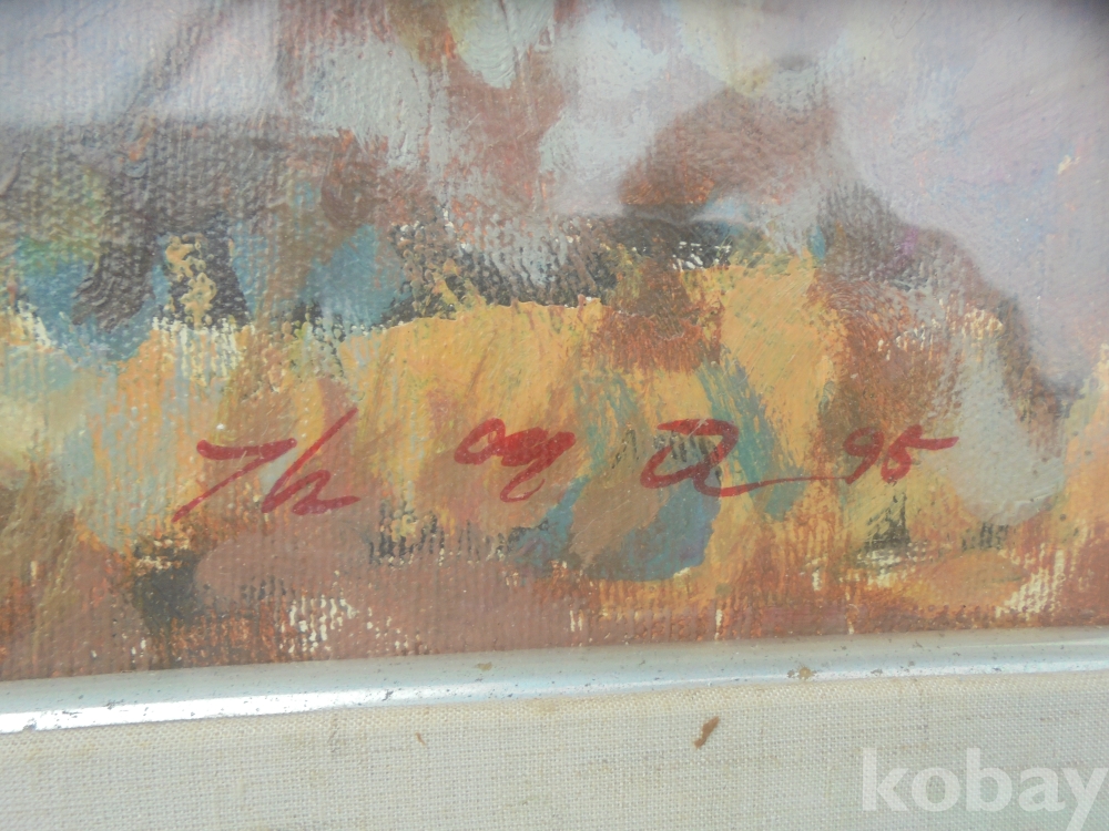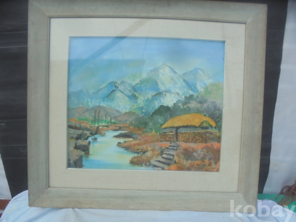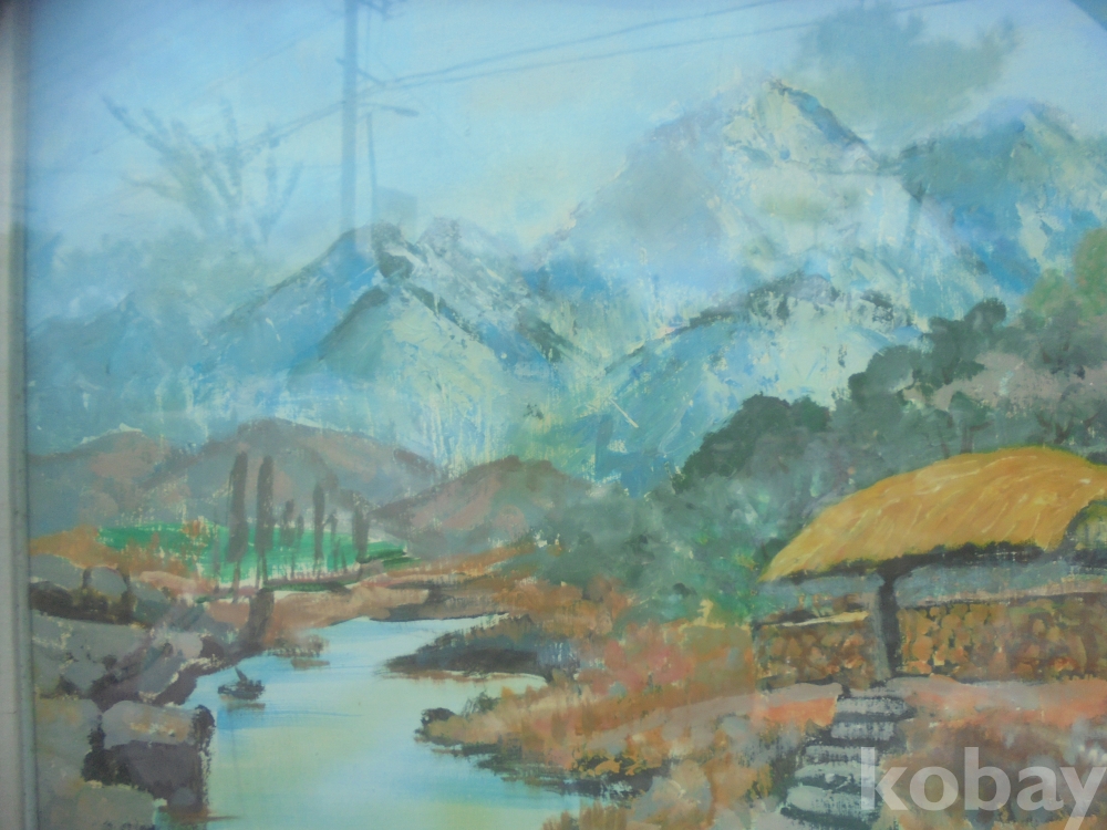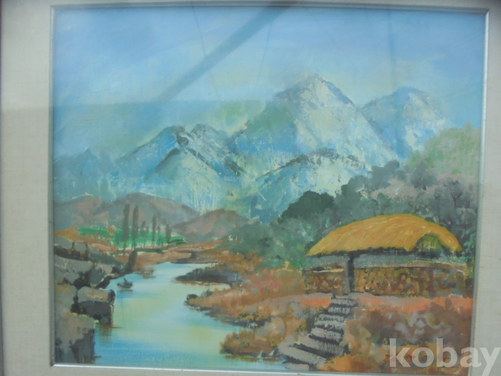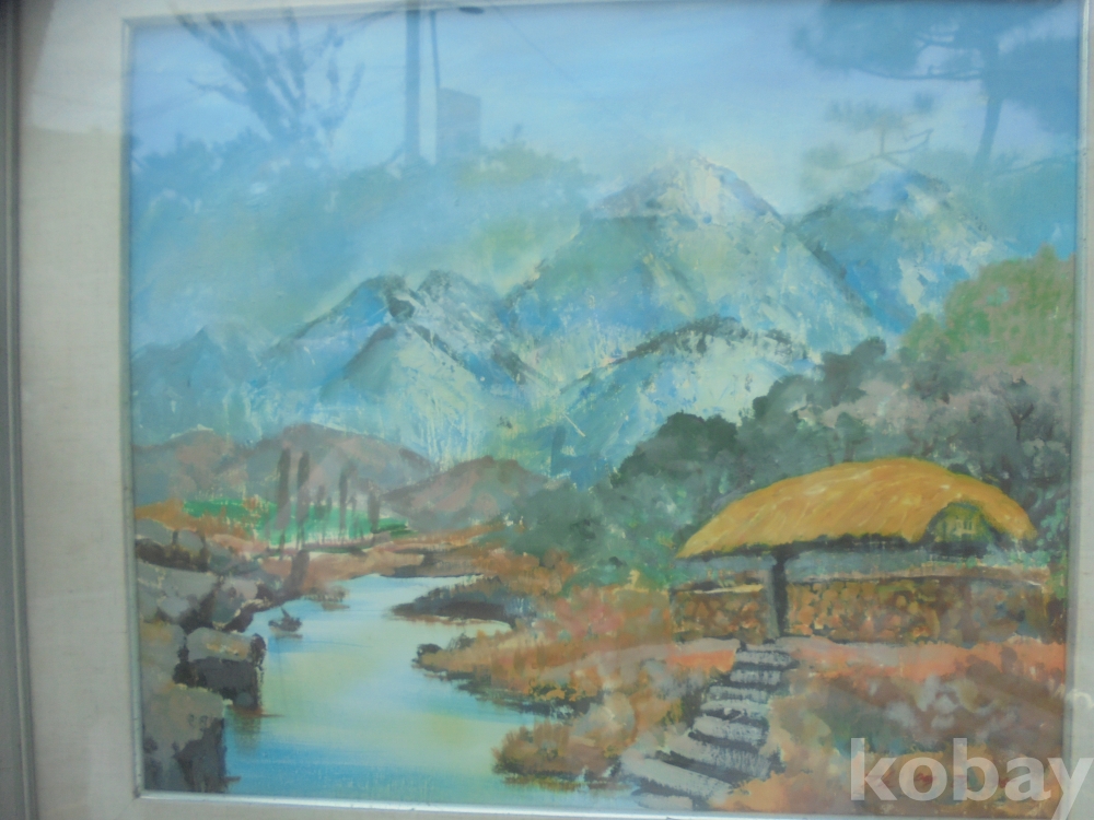 한국액자유화그림작품 ㅡ3 ㅡ김영교,초가집겨울풍경