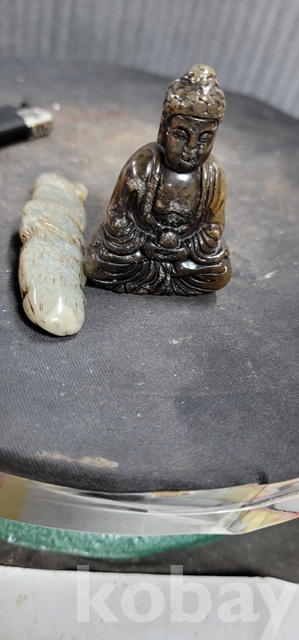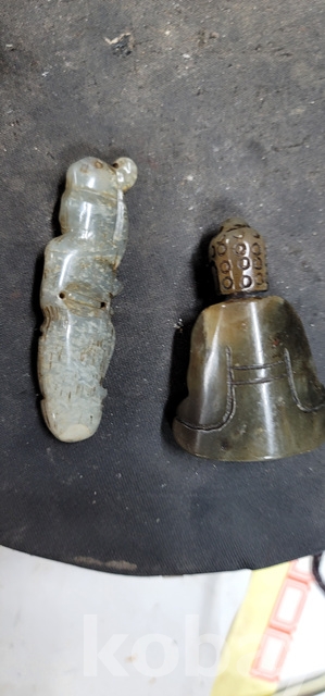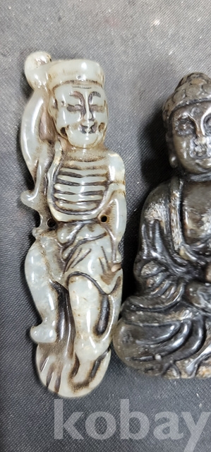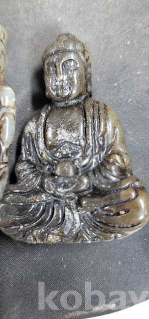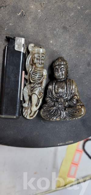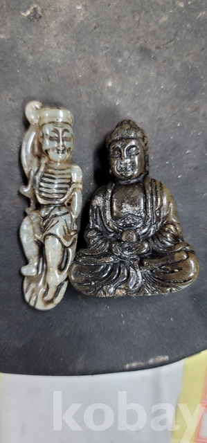 h-34-1.고급 수산옥으로깍아만든 옥불상과시녀 호신불 2개일괄