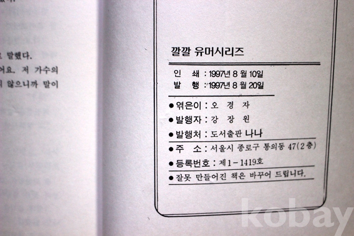 깔깔 유머 시리즈 - 오경자 엮음 / 1997년. 도서출판 나나 발행