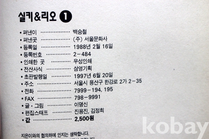 (만화) 실키 리오 6권 완질 - 이명선 작품 / 1997년. 서울문화사 발행