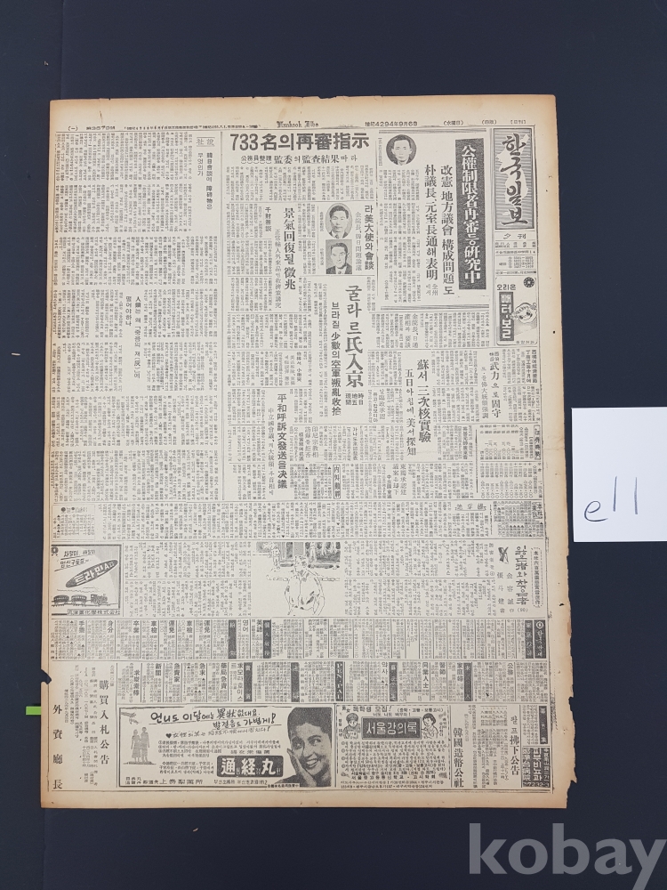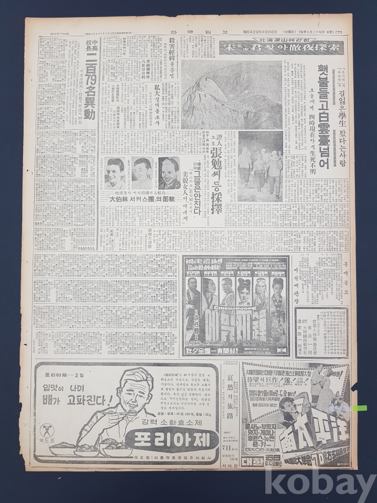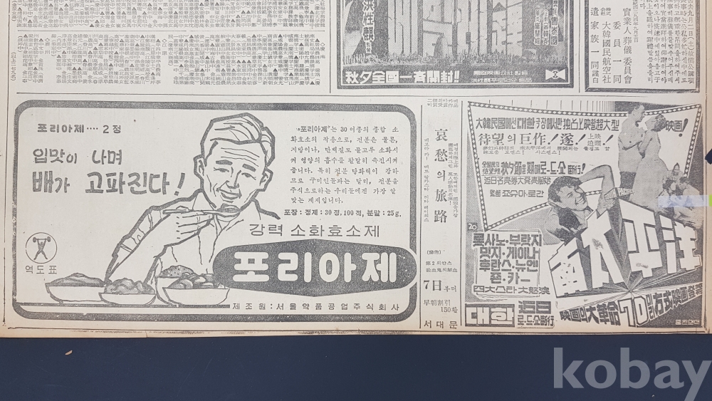 **** 한국일보/1961년 9월 6일/2면*강력 소화효소제 포리아제 등 광고 포함