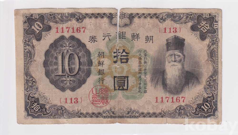 - 조선은행 지폐 모음展 7 - 1932년 개 십원 - 판번호 113번 사용제 지폐