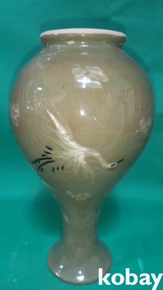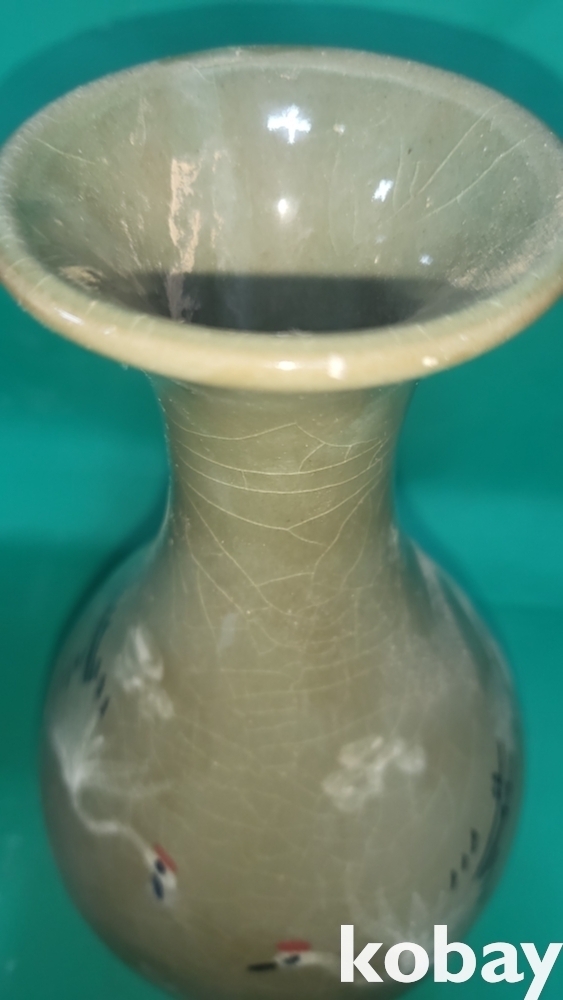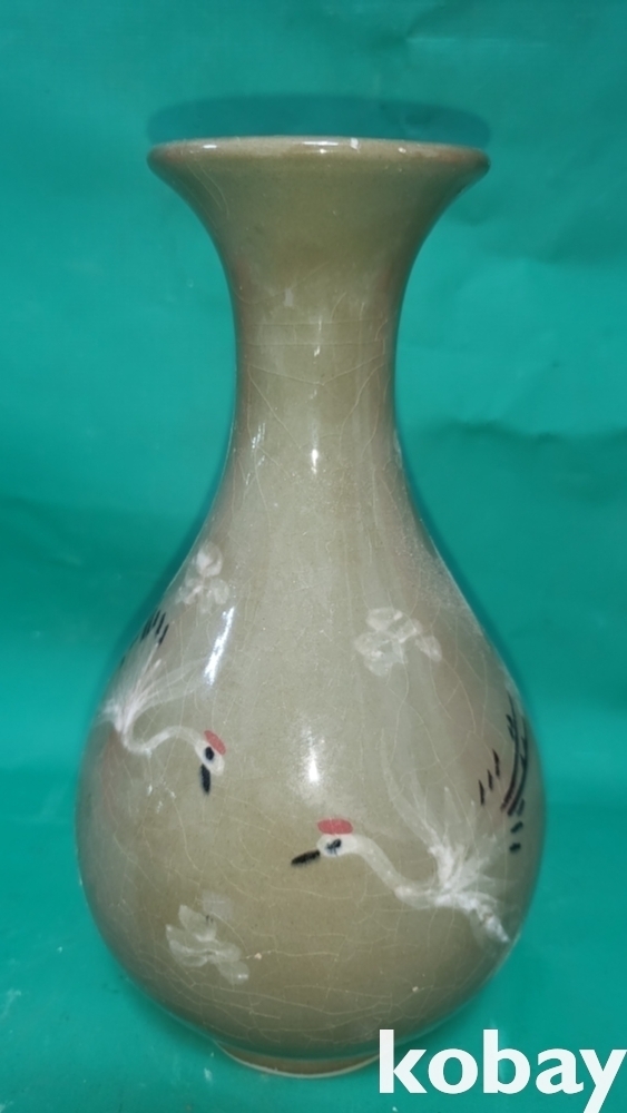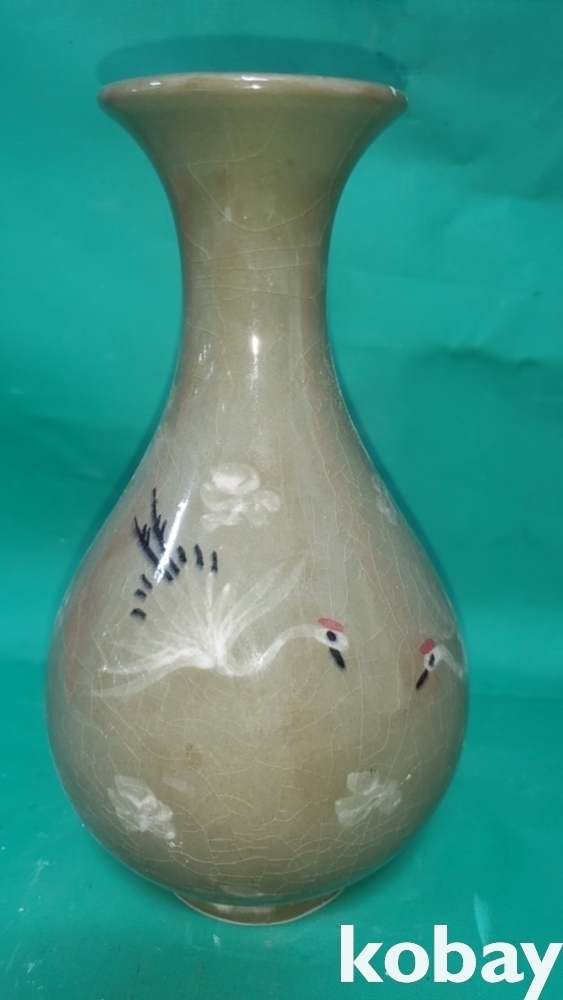 흑백 상감 청자 운학(雲鶴)문 병입니다,