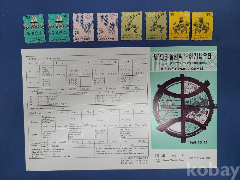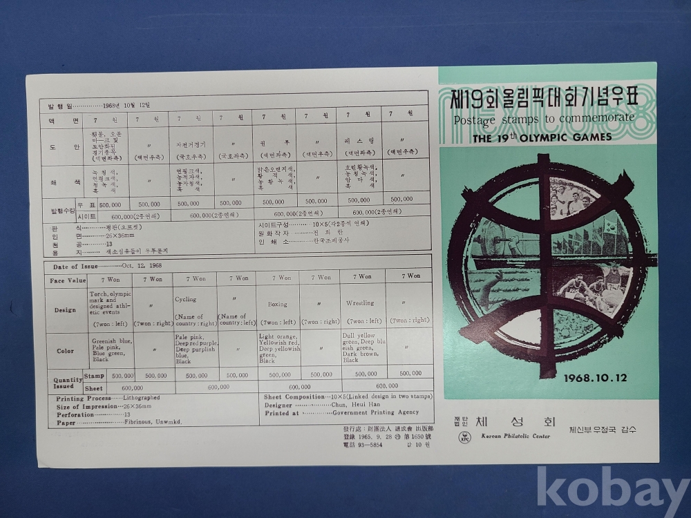 제19회 올림픽대회 기념우표+안내카드(접히지않음)
