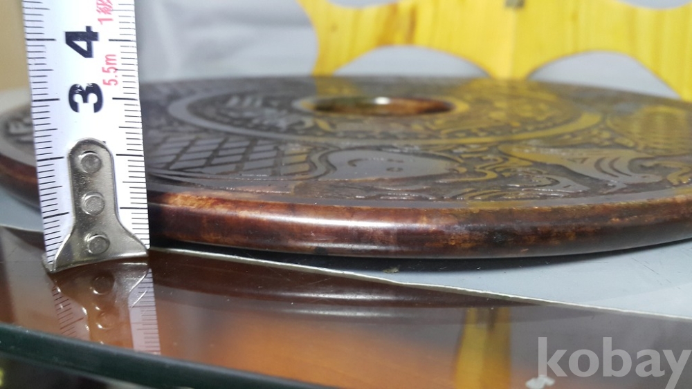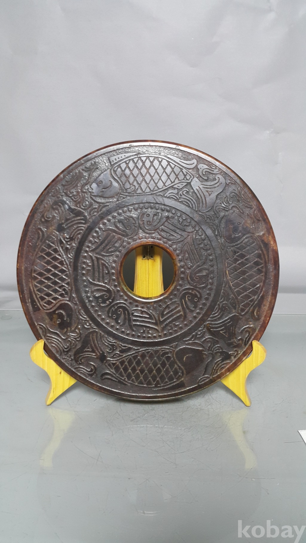지름 30센티에 이르는 대형급 옥패입니다. 귀하고 단단한 옥을 잘 선별하여 문양을 넣었습니다 크기만큼이나 무겁고 옥이라서 가공이 쉽지 않던 제품입니다. 좌대도 함께 드립니다 시중에서는 이정도의 제품은 이 가격으로 구하기 상품입니다