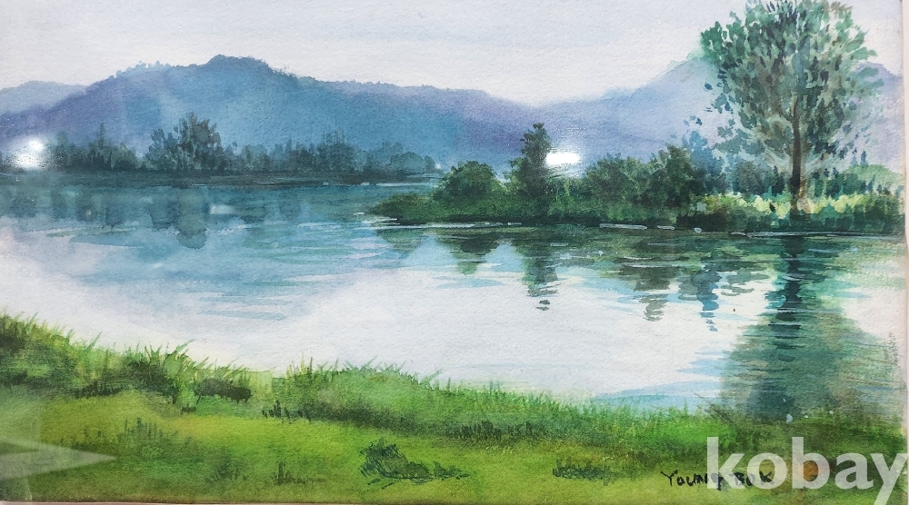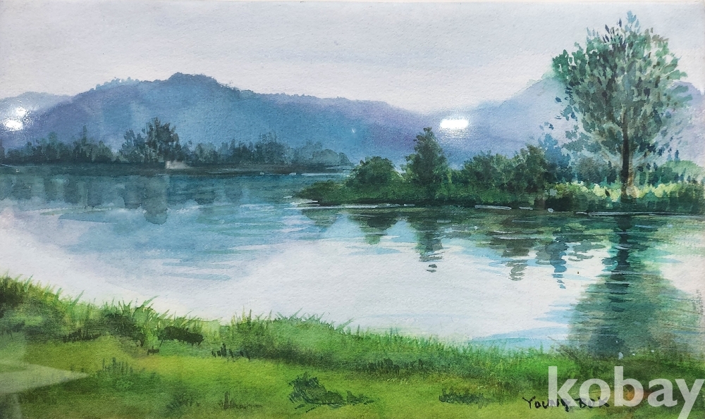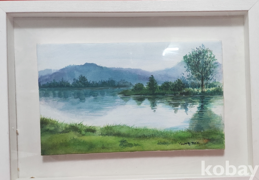 작가의 사인이 보이는 켄버스 유화 풍경화 8호급입니다,