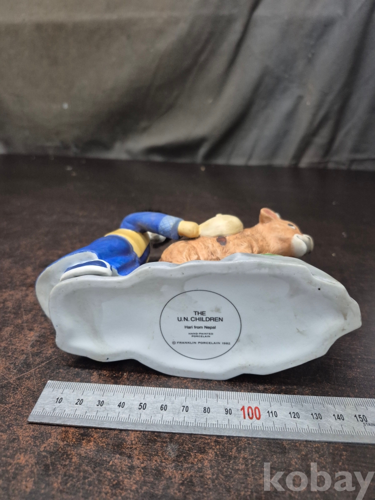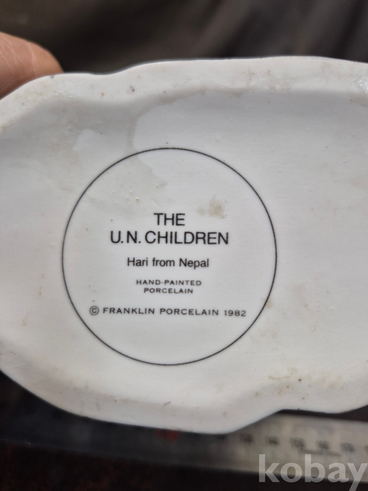 1982년 프랭클린 포셀린 에서 제작한 유엔 어린이 네팔소년 하리 도자기 인형 핸드메이드 채색 목 수리흔적 16.5*7*13