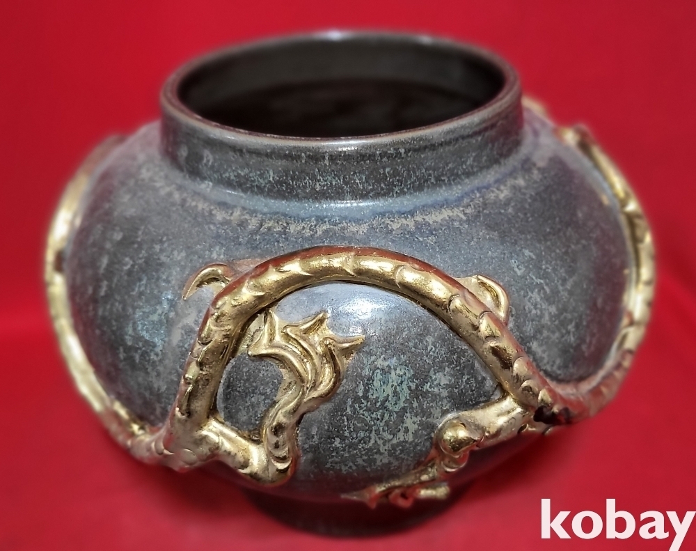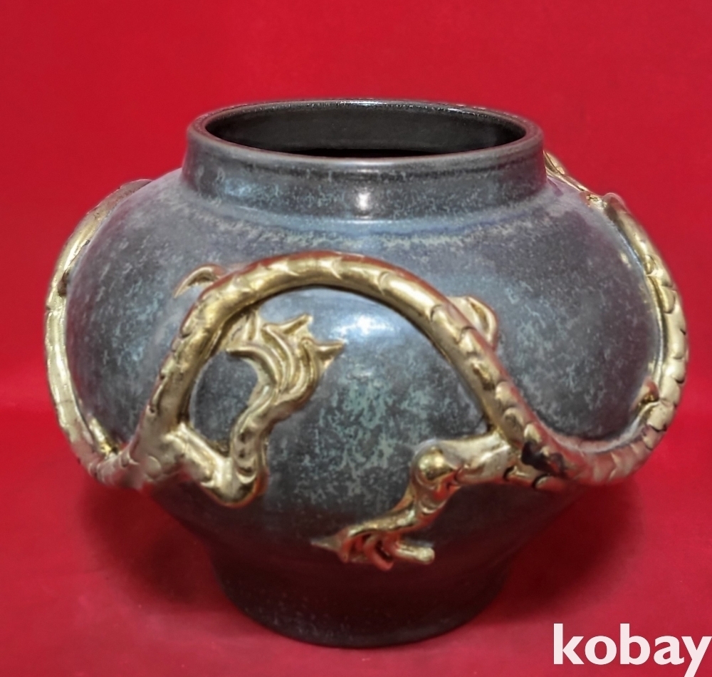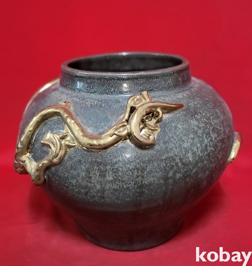 추부(樞府) 관지 보이는 첩화(貼花) 기법으로 완성된 황금용 ( 黃金 龍) 문양 항(樽)입니다,