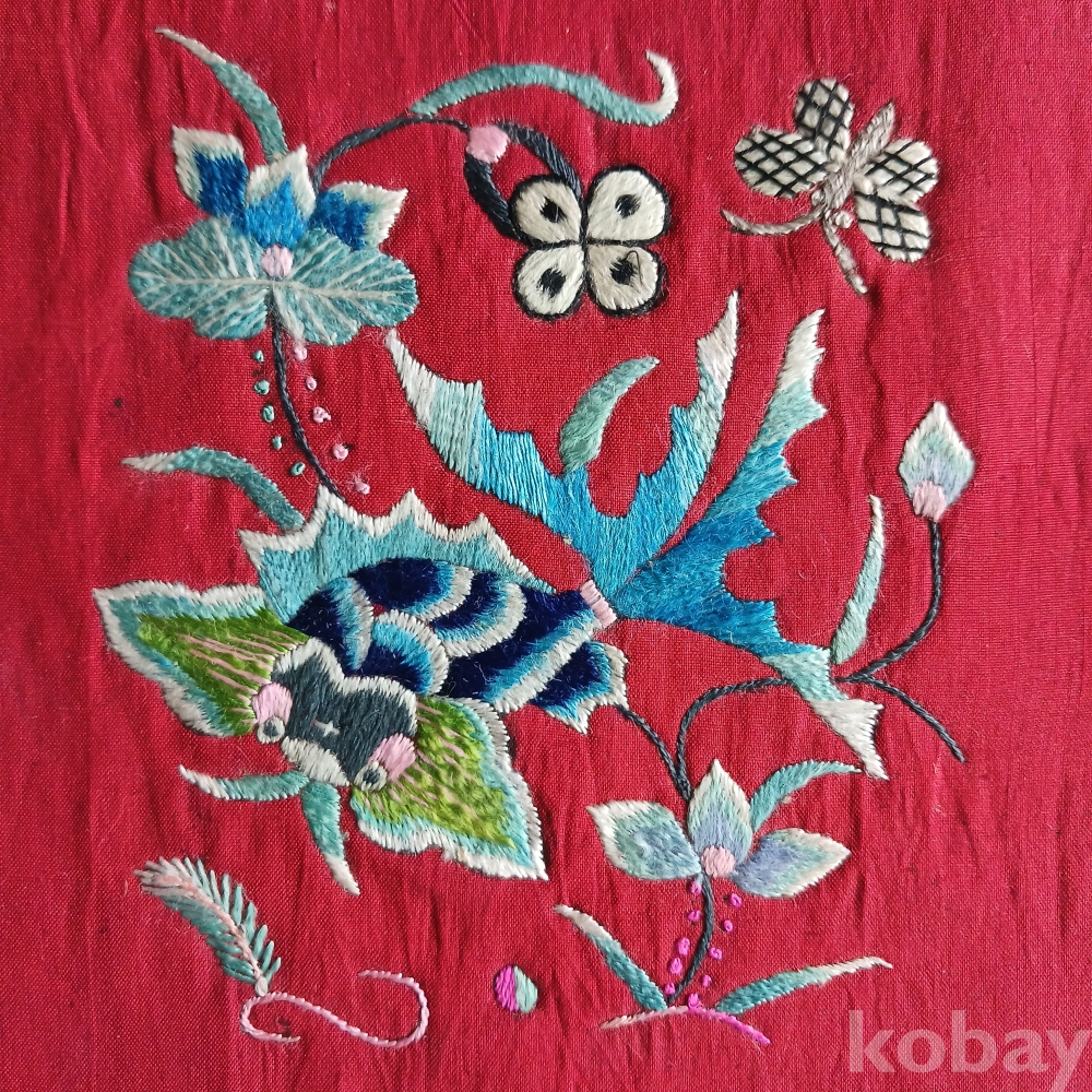 근대유물 골동품 자수 손수예품 벼개 베갯모 베개 동양화 장식 인테리어 아름다운 식물과 동물도안
