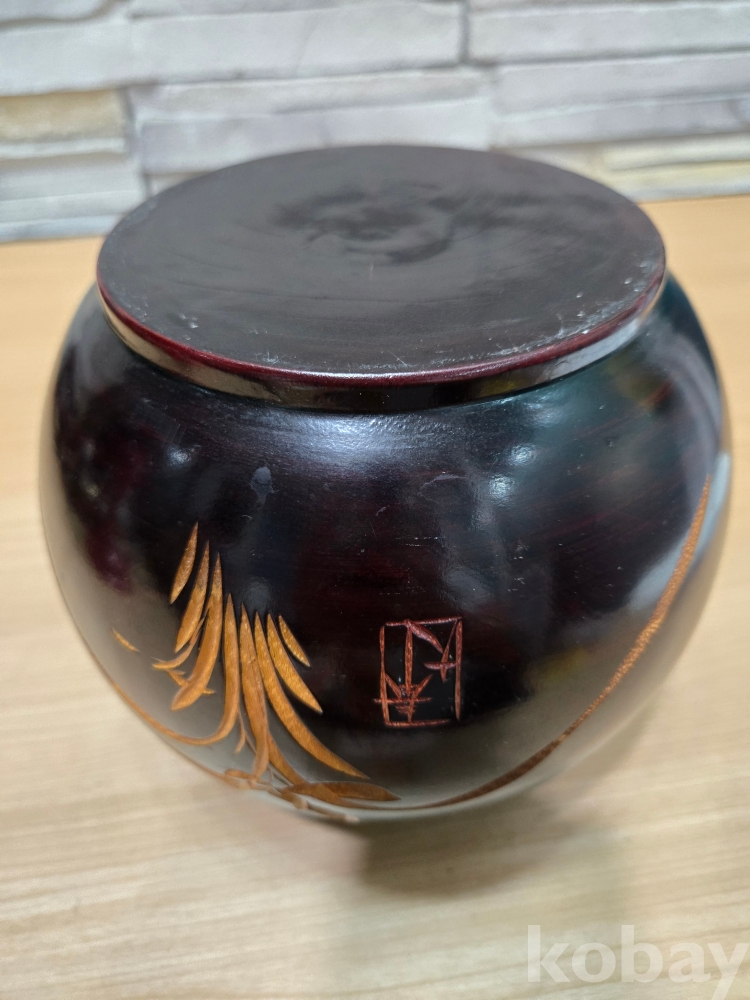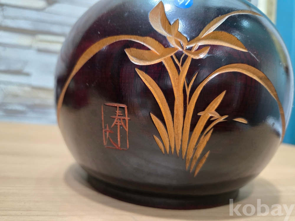 난초 문양이 음각으로 표현된 나무 필통 입니다.