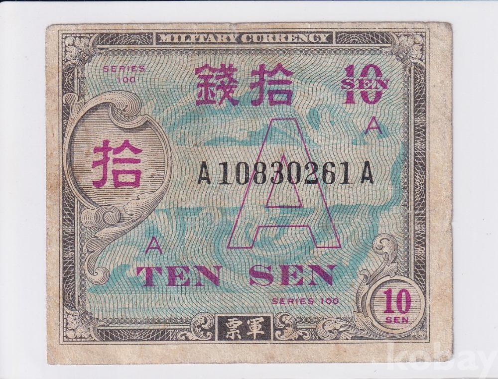 * 제2차 세계 대전 당시 일본에서 사용된 군사 통화의 일종인 군표 입니다. 일본 점령과 함께 일본 국내에서 유통되었습니다.