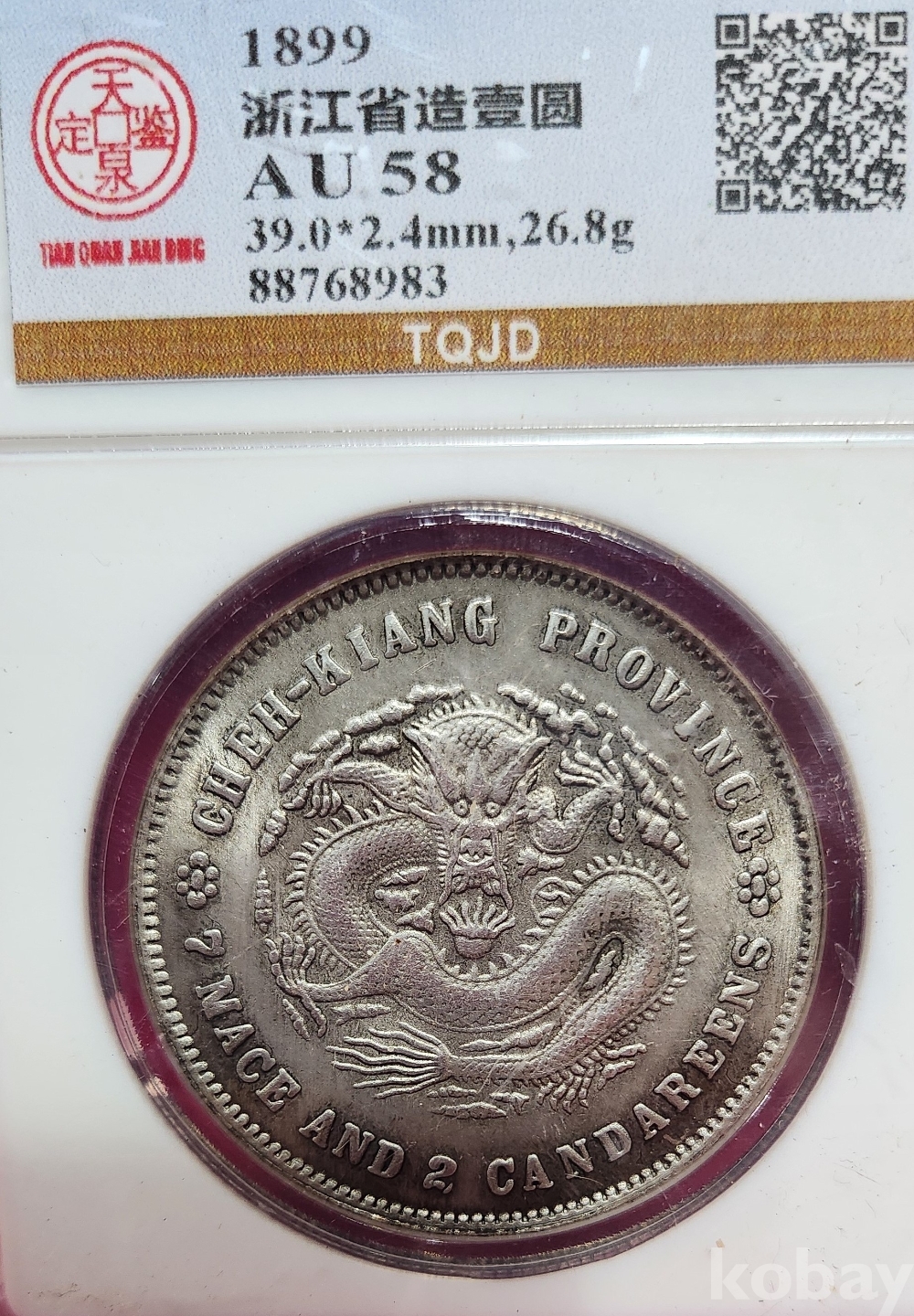 1899년  큐알코드(QR CODE)가 함께하는 은색  광서원보 (光緖元寶)' 화패로 밀봉된 상태입니다,