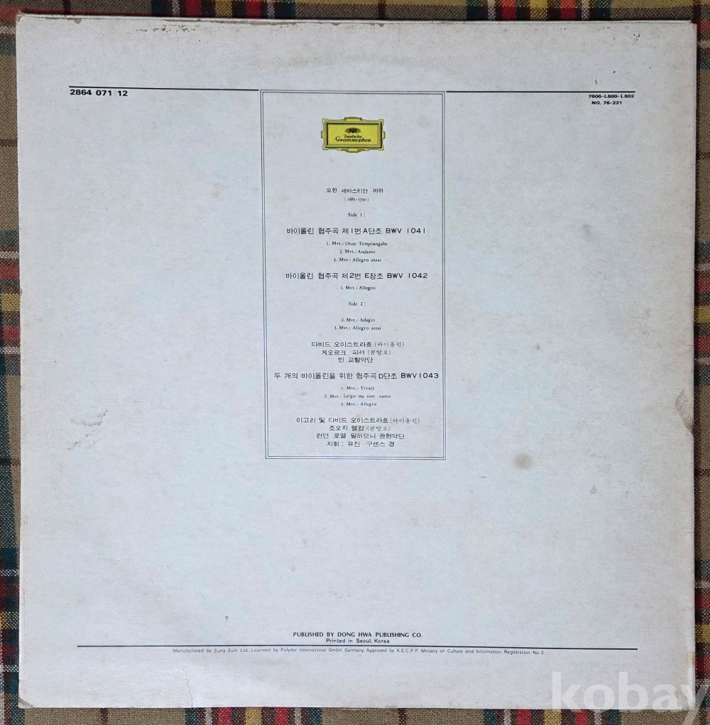 바흐 바이올린 협주곡 1번 & 2번 - 다비드, 이고르 오이스트라흐 (1979) LP입니다