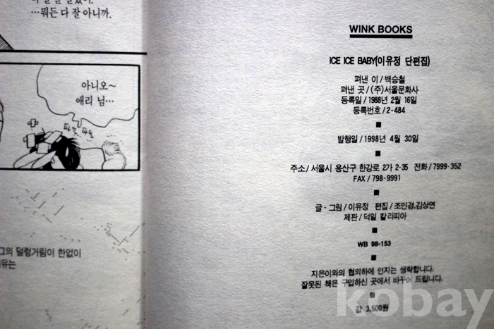 (이유정 단편집) 아이스 아이스 베이비 - 이유정 글. 그림 / 1998년. 서울문화사 발행