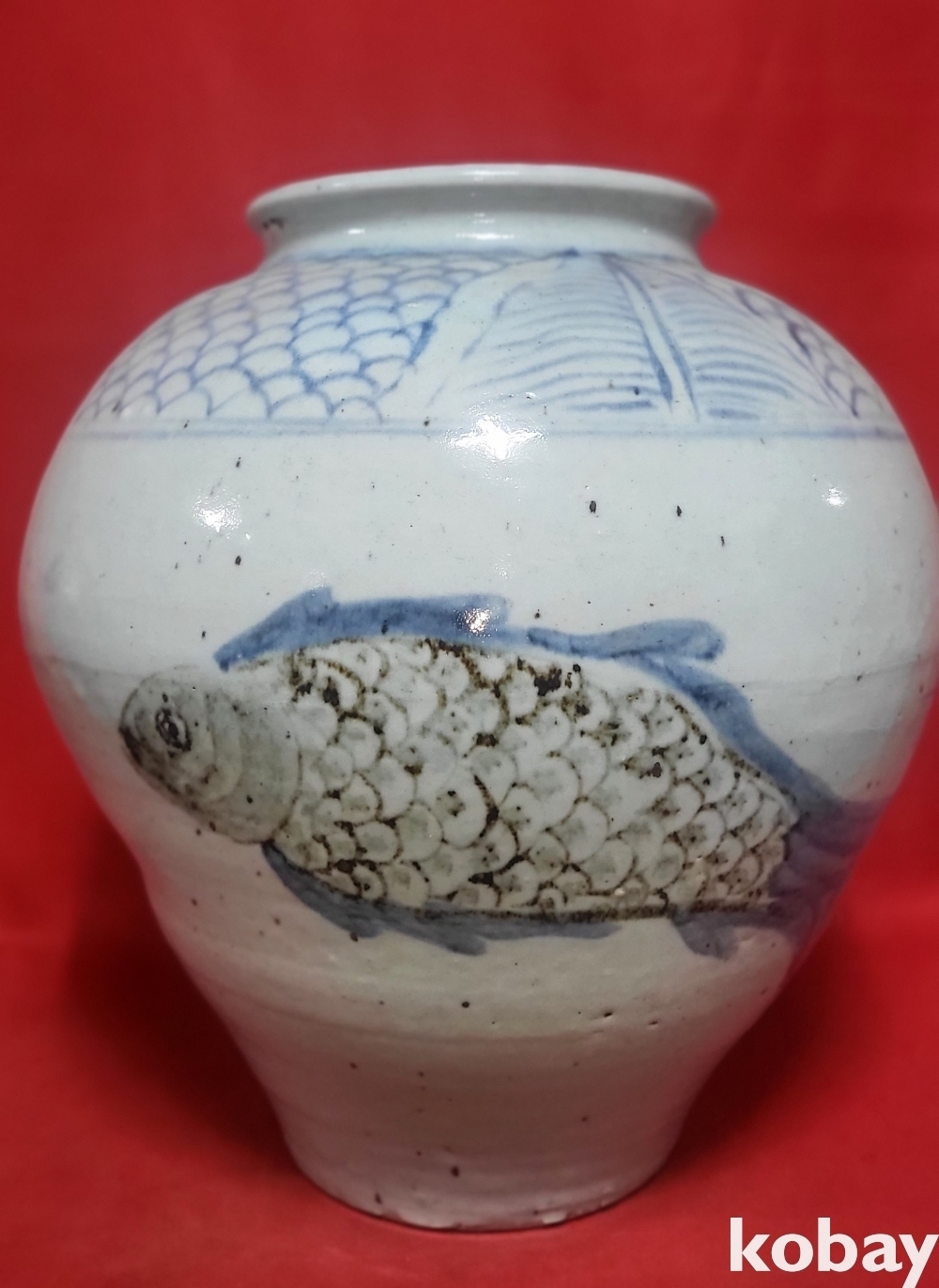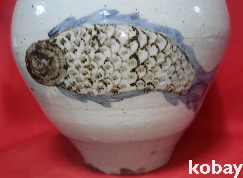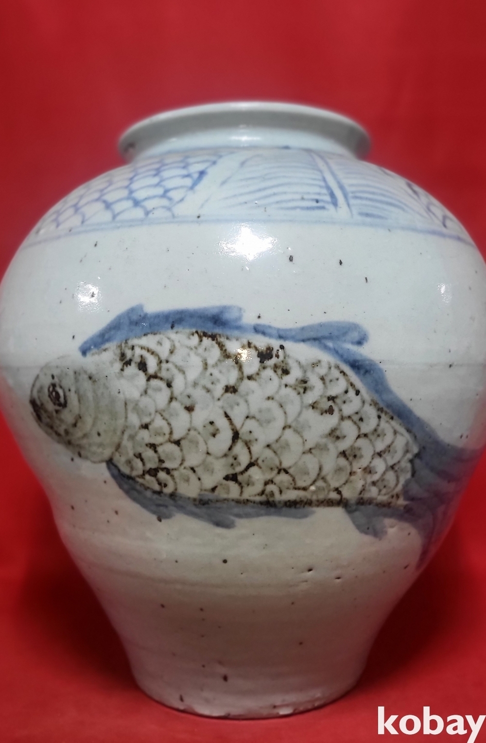 양면에 큰 물고기가 철화 도안으로 있습니다,