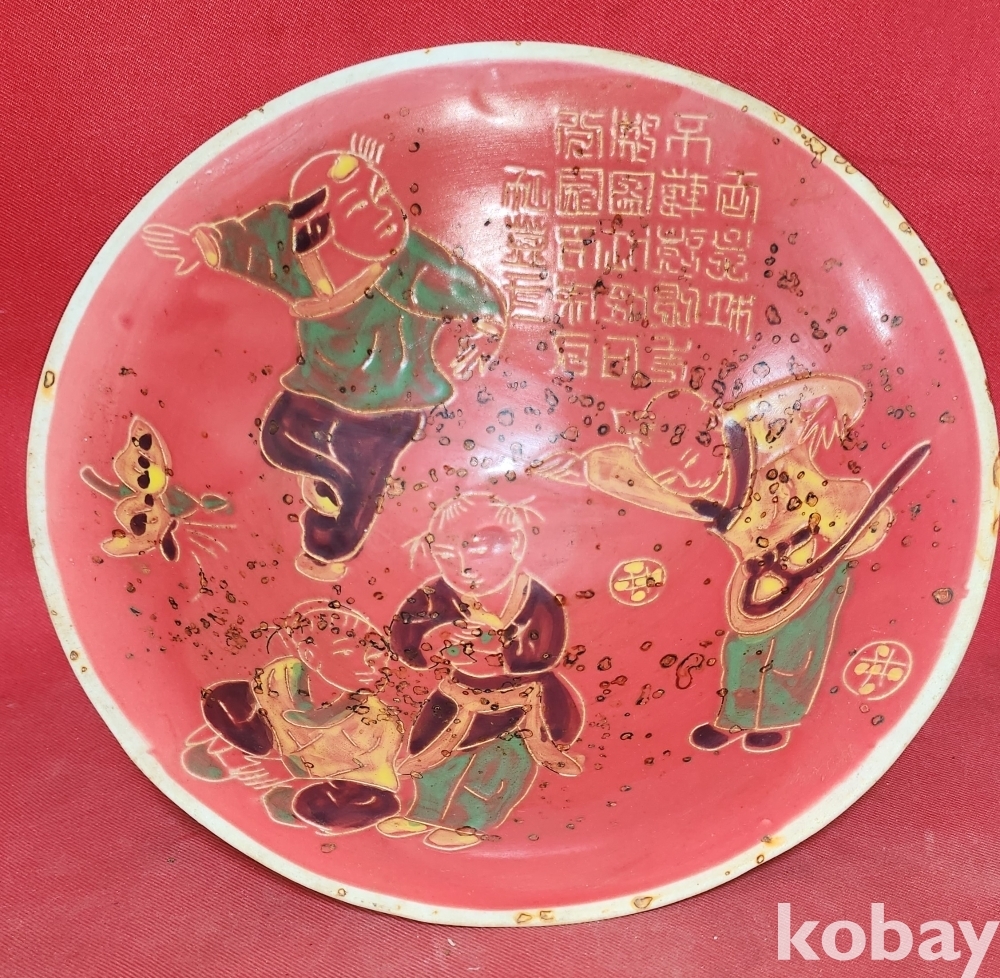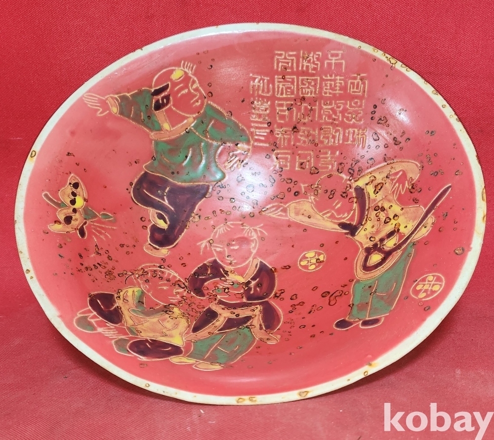 청대 적유 동자 무늬 큰 완입니다,