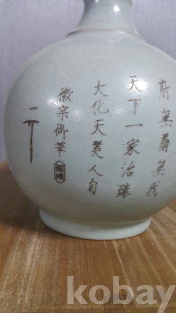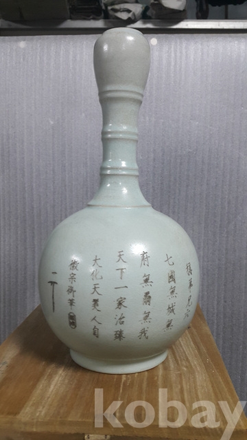 c-227.고급 오동박스에담긴오래된 목이긴 중국5대도자기 글자문 송 여요주병