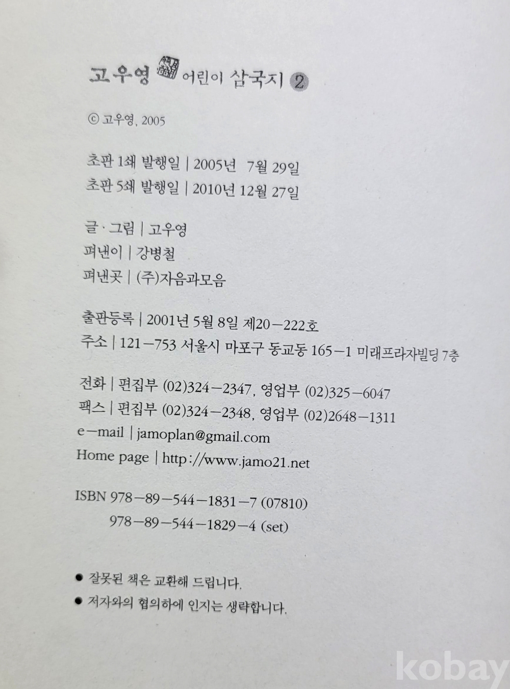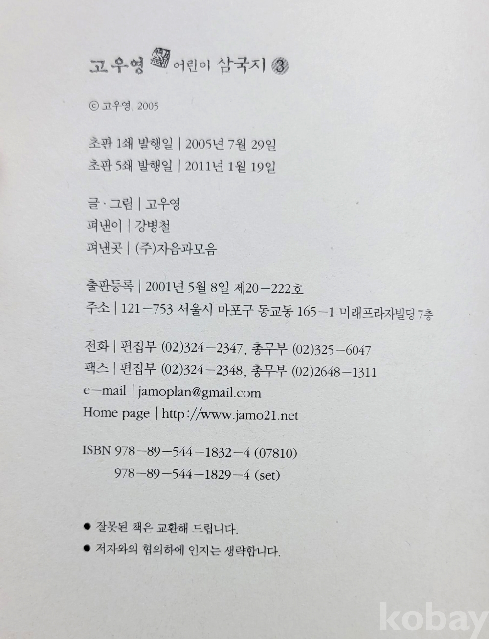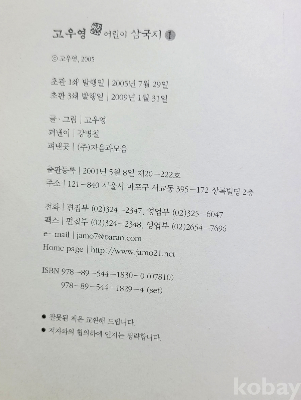 물 품 명 | 어린이 삼국지(1~5) 총5권 / 2009,2010,2011년 / (주)자음과모음 |