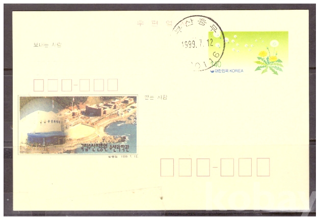 (광고엽서) 1999.7.12 지방판 LAPC306 국립수산진흥원 (민들레 140원) (초일일부인)