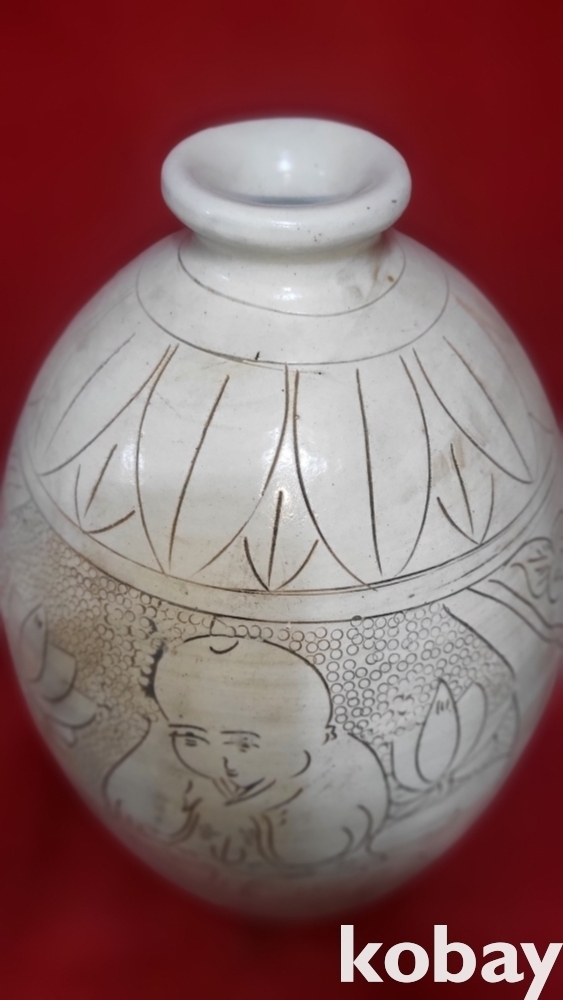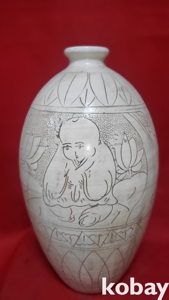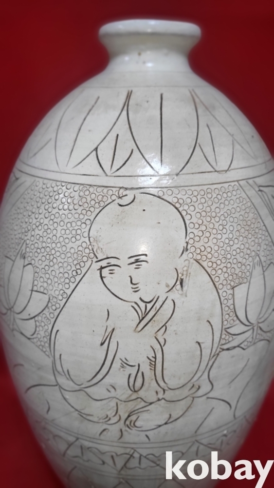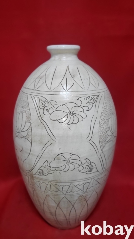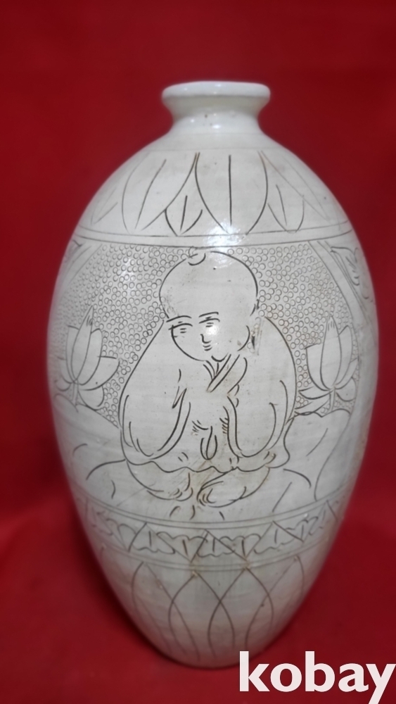 청나라 시대 백자 연꽃 동자문 큰병입니다,