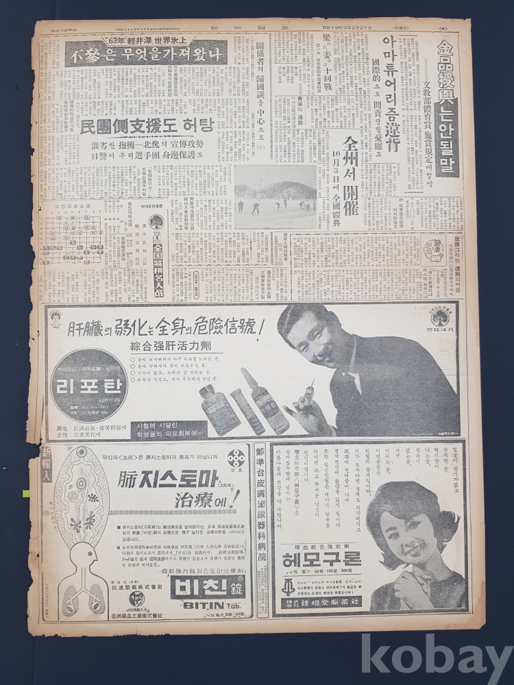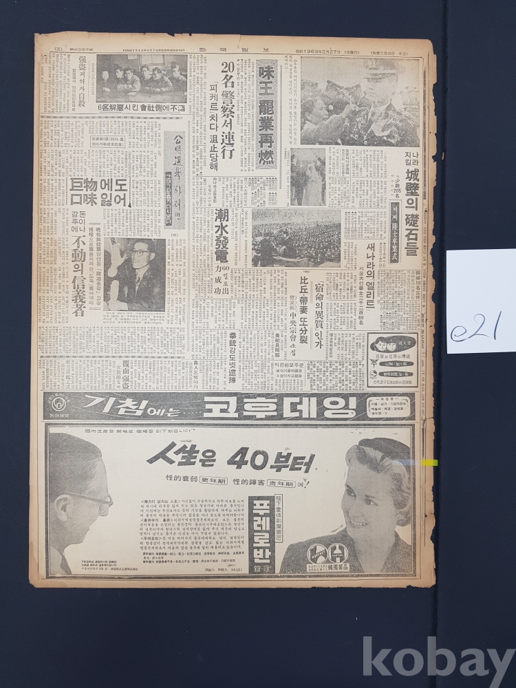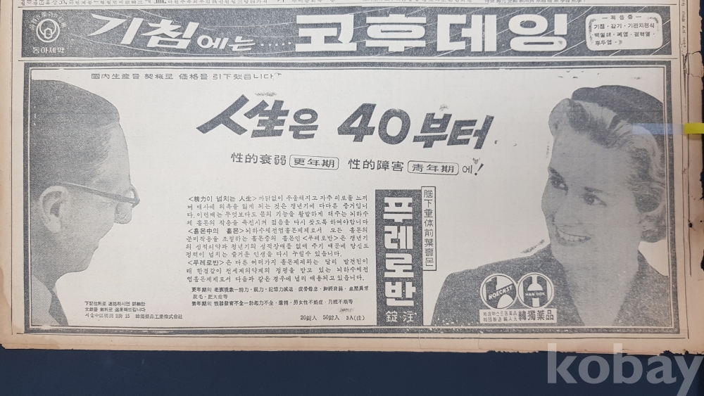 **** 한국일보/1963년 2월 27일/4면*인생은 40부터 푸레로반 한독약품 광고 포함
