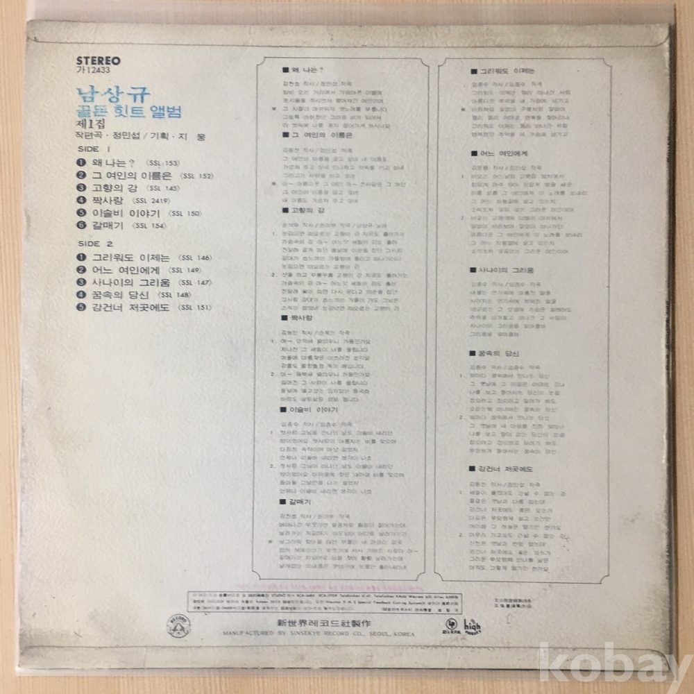 . 가요음반 대부분은 휘어짐이나 손상을 방지하기 위해 무지싱글자킷을 하나 더 사용하여 보관되었던 음반들입니다.