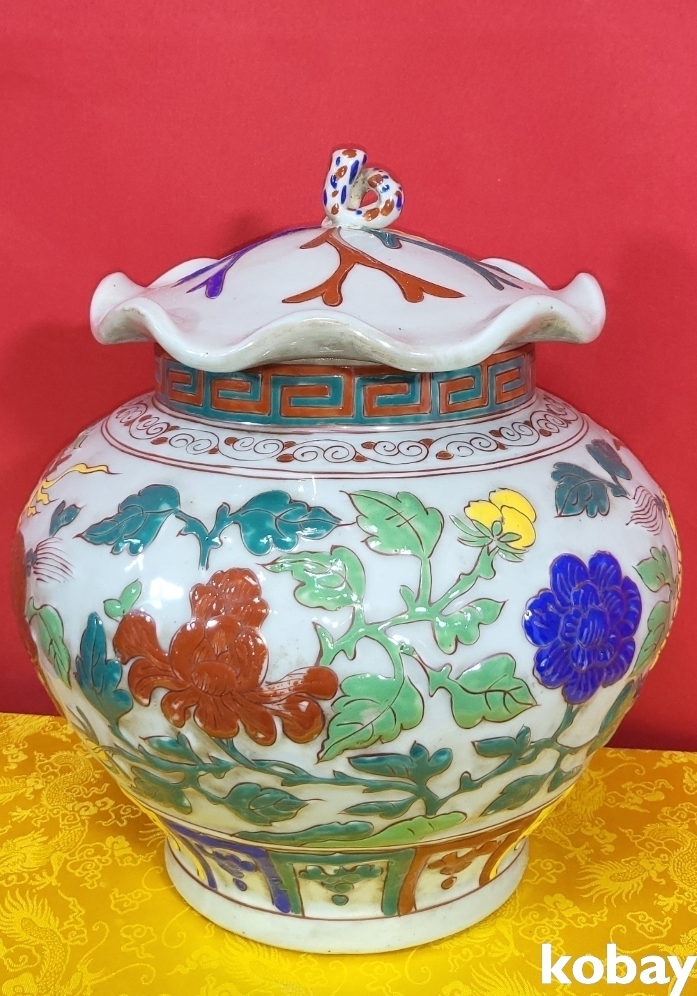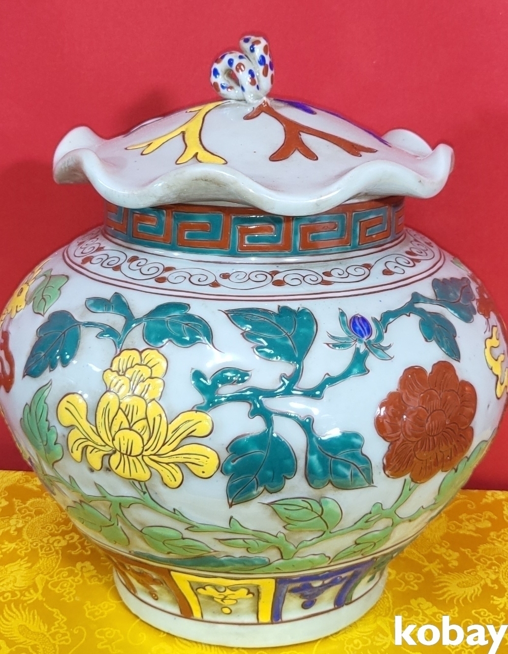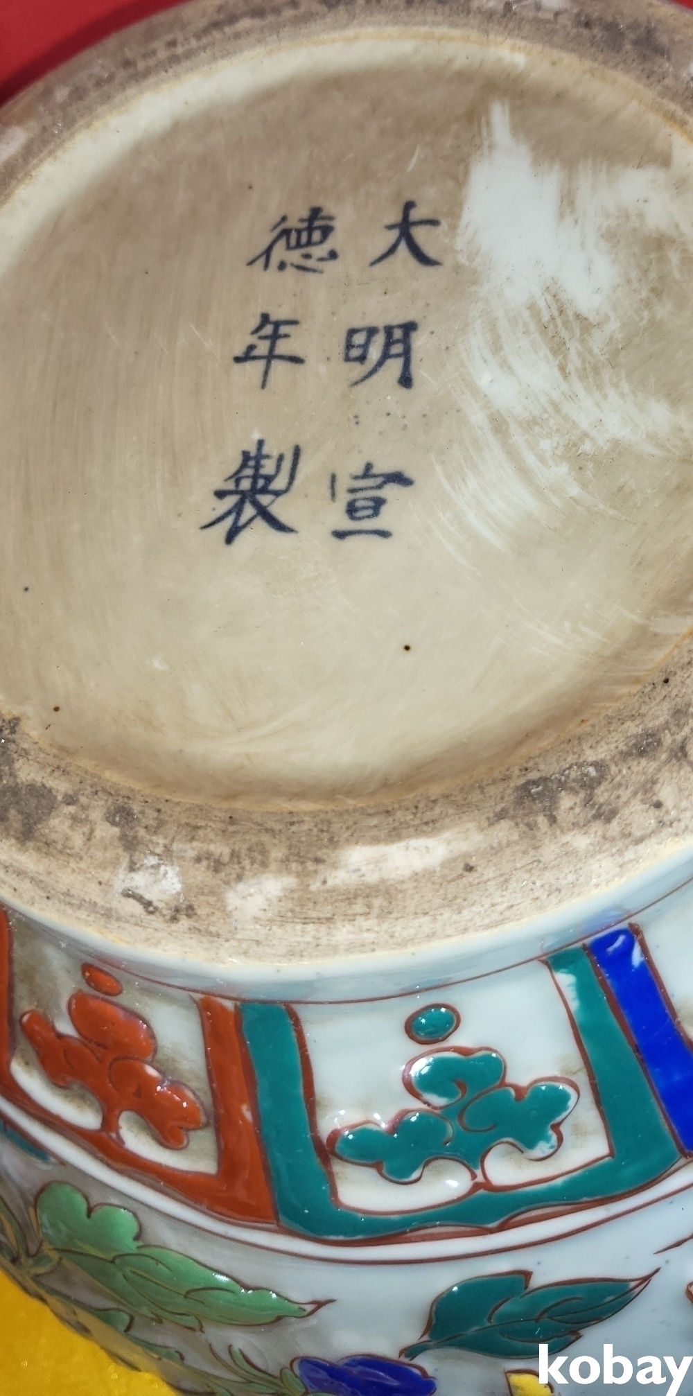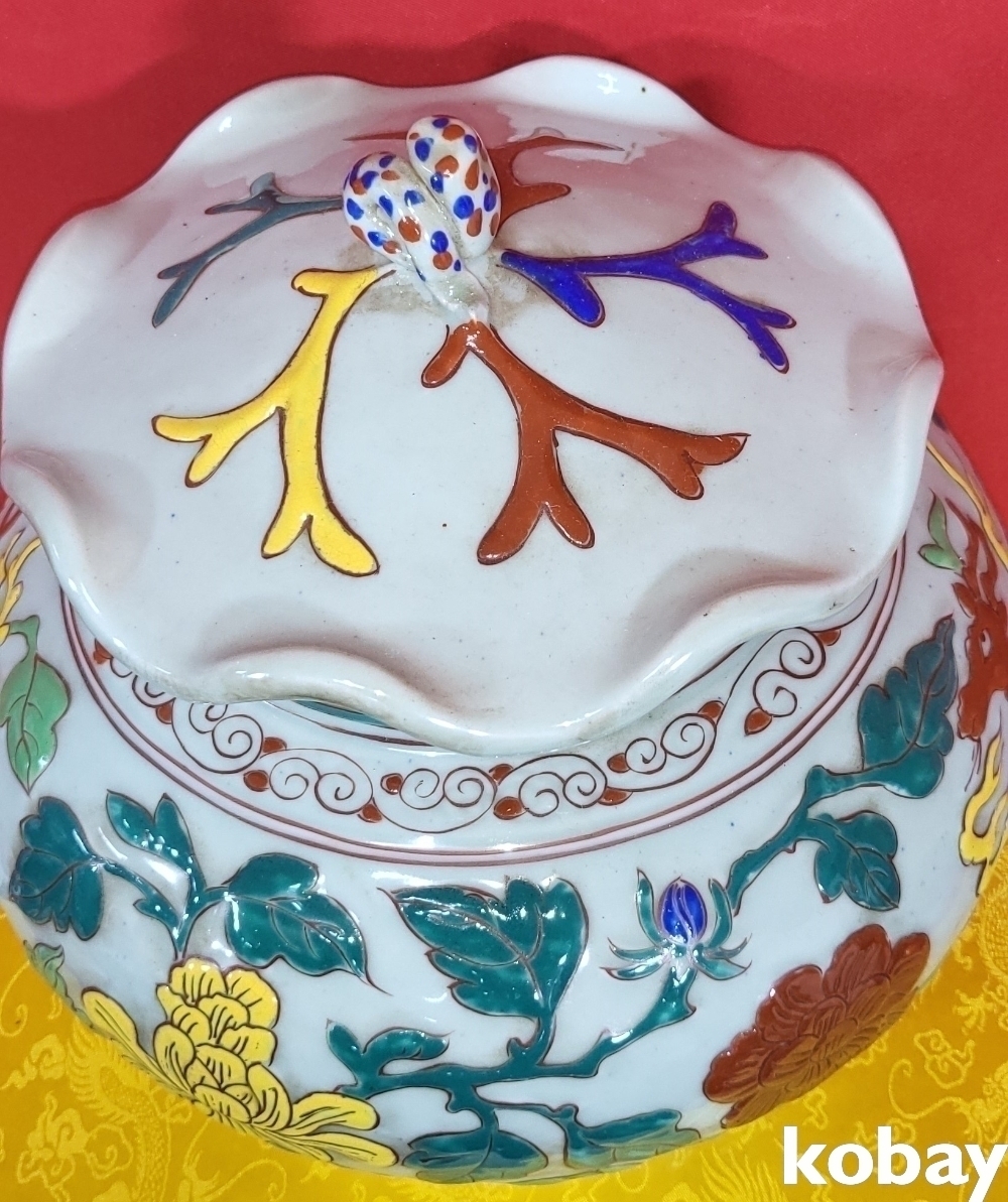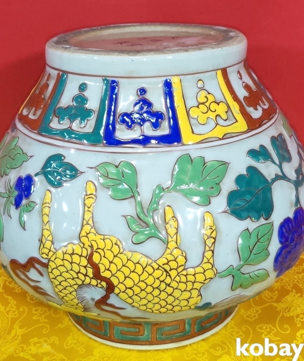 양명에 황색 홍색 사슴이 시문된 명품임니다,