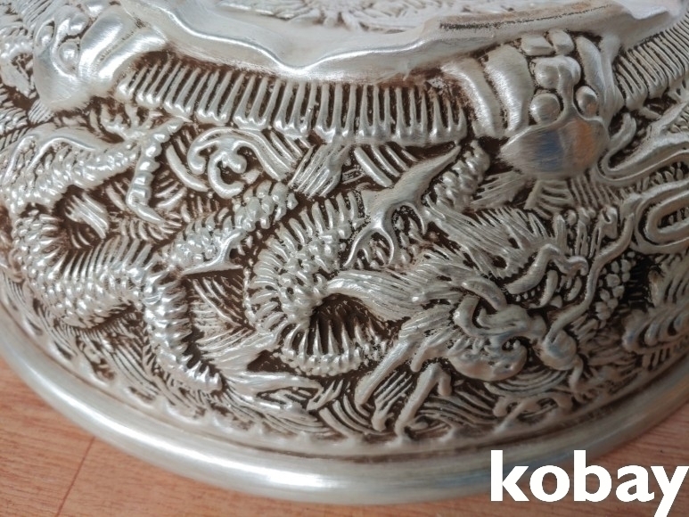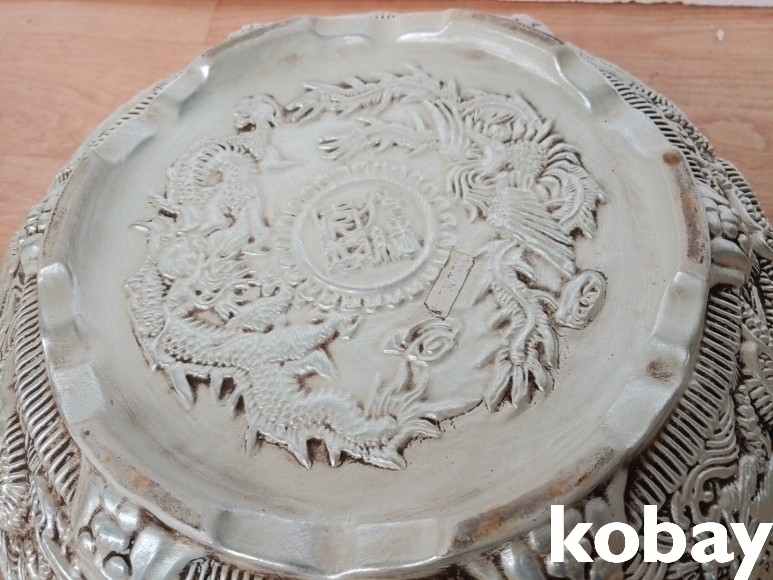 용 돌출과 은분칠이 된 대형 도자기 입니다.