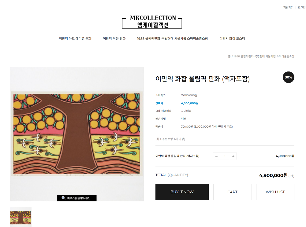 서울올림픽을 기념하여 만든 작품중 하나이며, 실제 이만익 기념전에 걸렸던 물품입니다.