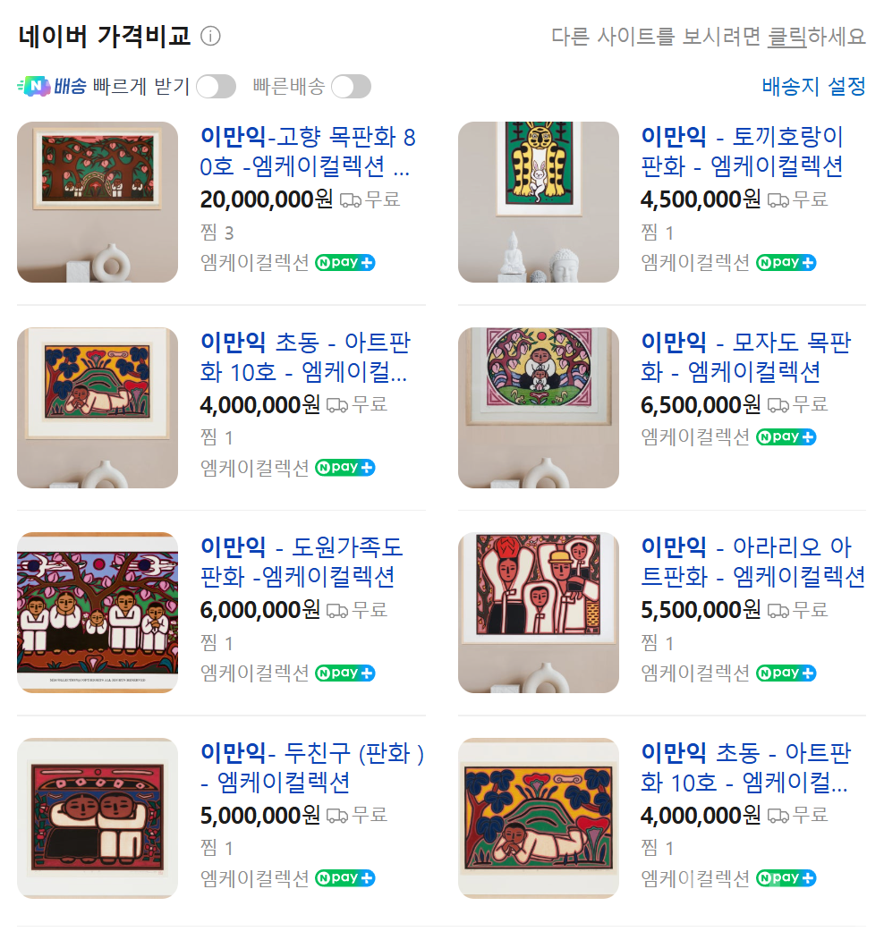 다른 갤러리에서 보증서 없이 490만원에 판매하고 있는 반면,