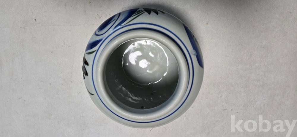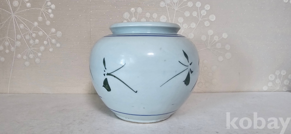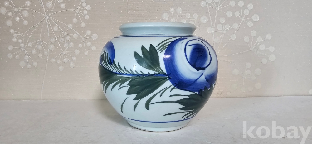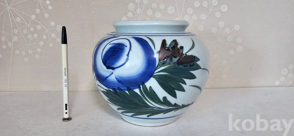 @. 연대가 있는 묵직한 골동급 목단항아리.