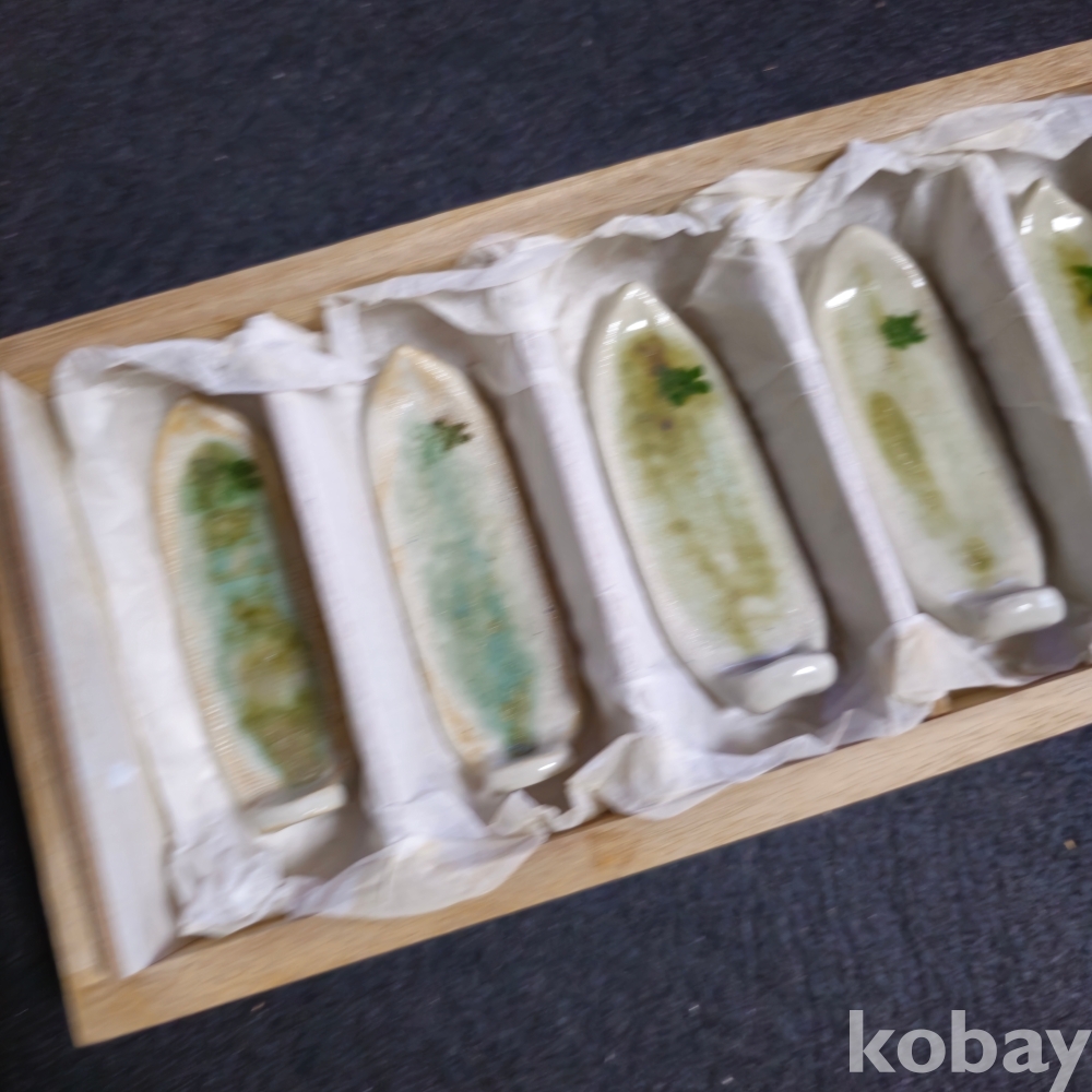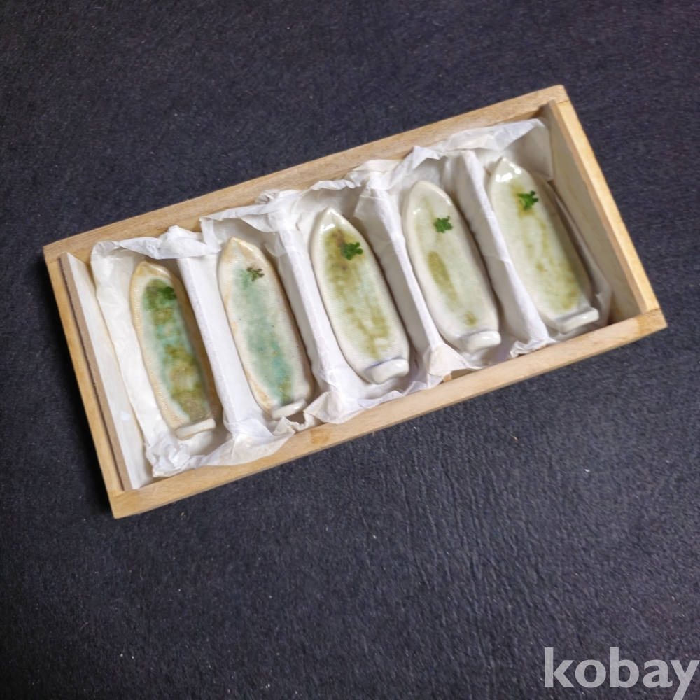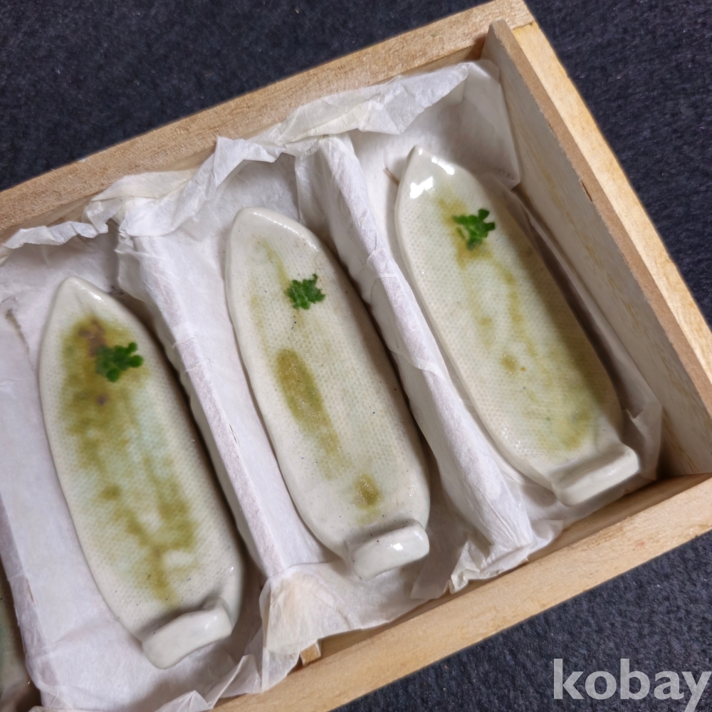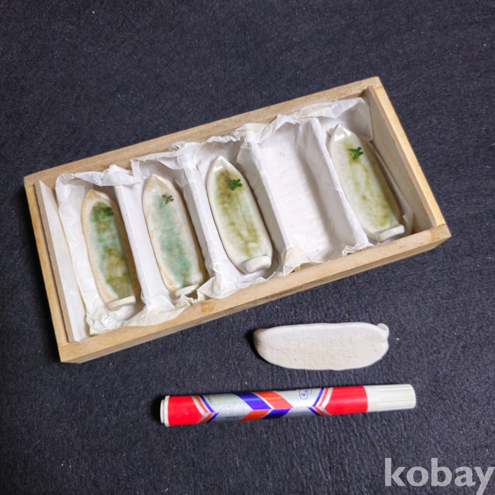(((도자기소품))) 오래전 약간은 투박해 보이지만 정겨운 도자기 수저받침 5개 (미사용)