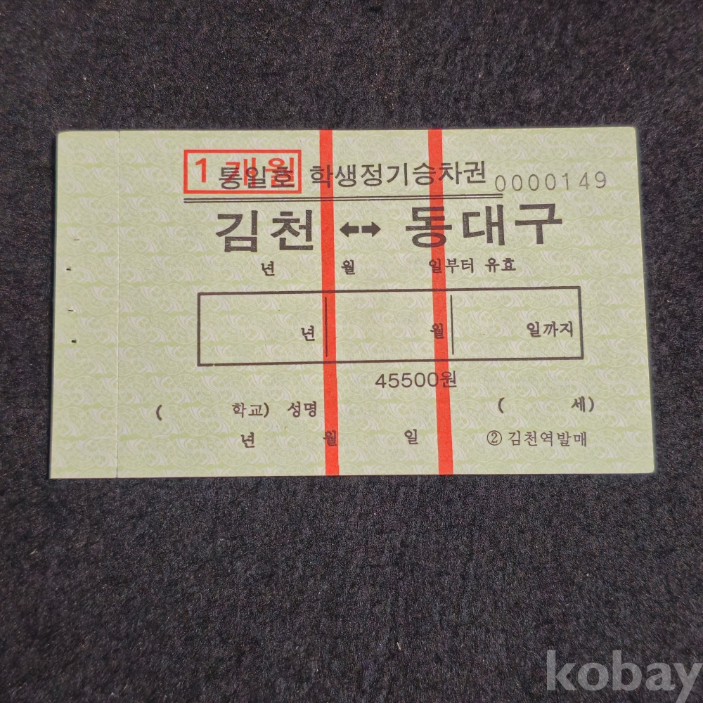 (천원경매) (((철도자료))) 오래전 통일호 학생 정기승차권 (김천역발매) (1개월)