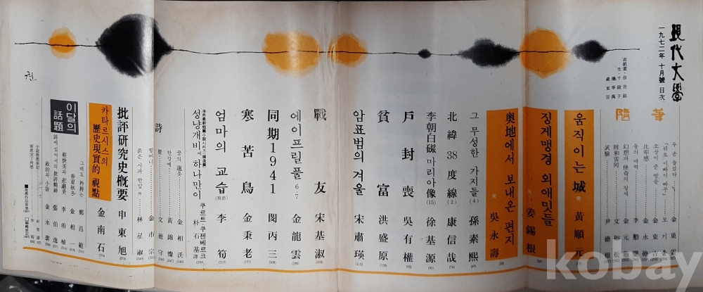 (별고)현대문학1972년10월호 NO214 표지 서세옥