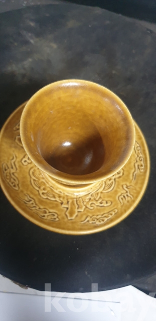c-32.오래된 양각난초문조각된 황지찻잔셋트