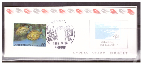 (우표첩) 1989.9.30 어류시리즈(4)*철갑둥어 booklet (1x4x1)