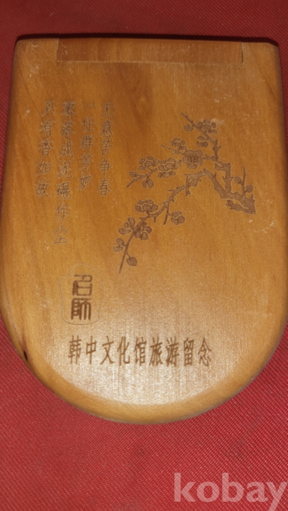 K 76 차 19下 스치번 ////// 한중문화관에서 만든 고급나무에 매화문양 빗과 거울이 함께하는 기념품 3개 일괄입니다,