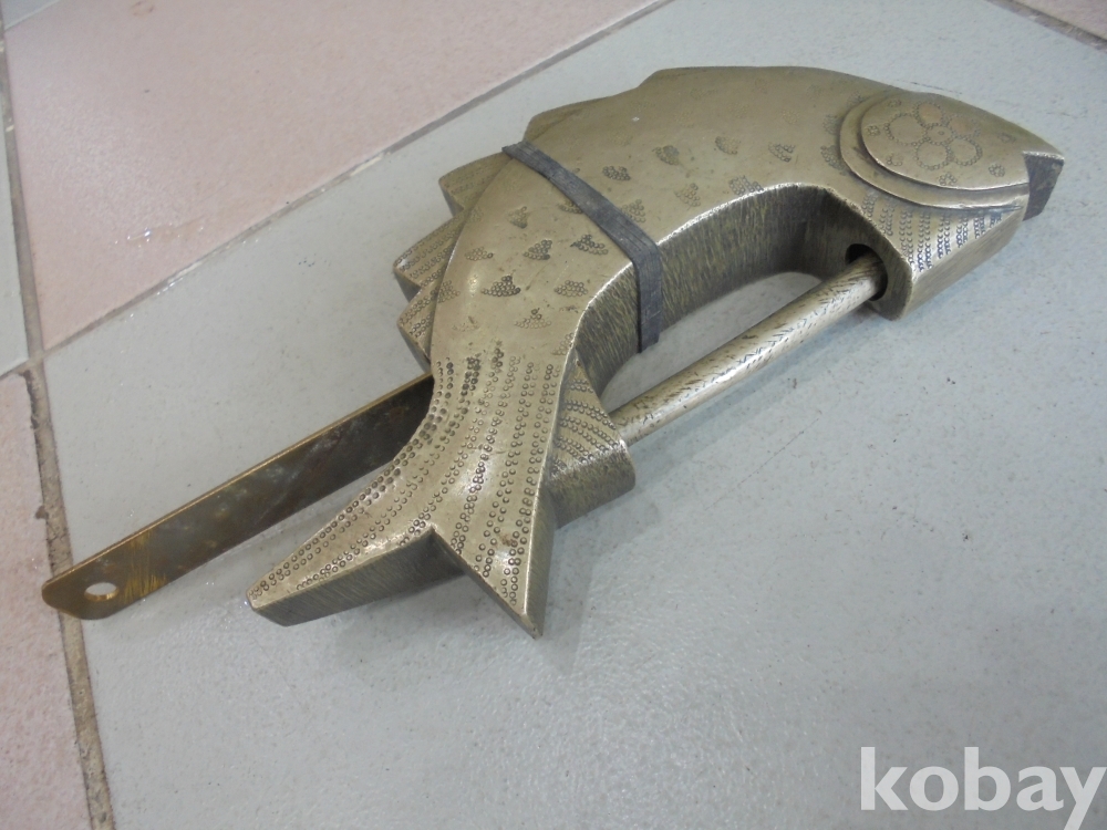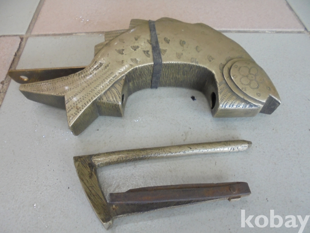 물고기는 눈뜨고잔다하여 등과 출세 재산지킴등 최고인기품으로 크고 무겁고 질이잘들은 열쇠도있는 성능좋은 육중한 오래된 백통 열자물쇠