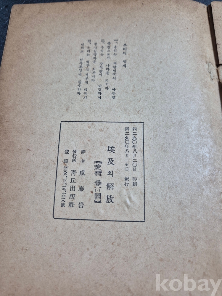 근대사 서적으로 1957년 발간한 "계급의 해방"이라는 서적입니다.