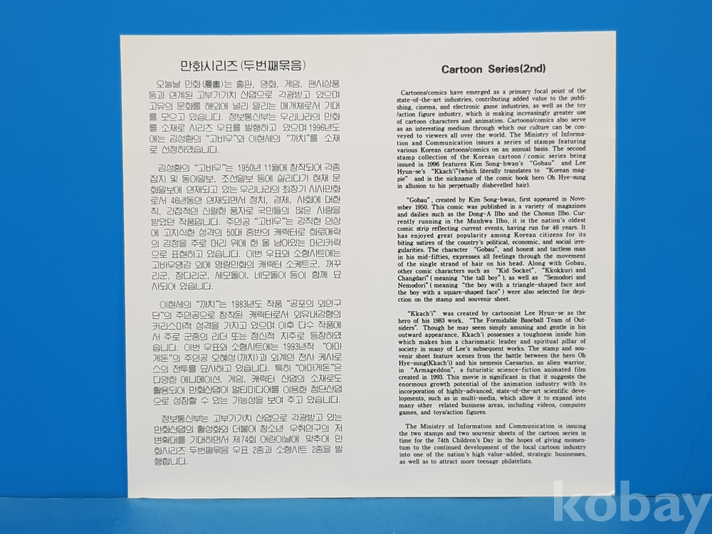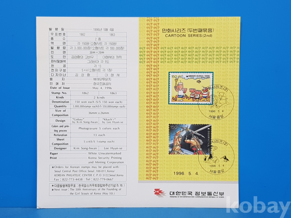 **** 만화시리즈(두번쨰묶음)/1996.5.4/대한민국 정보통신부*색 변함, 찢김, 접힘 등 있을 수 있음