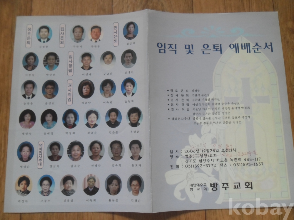 2006년 남양주 방주교회 임직 및 은퇴예배순서