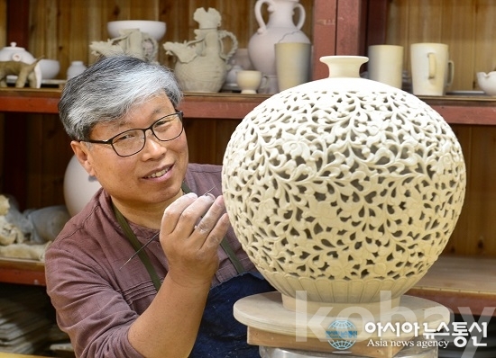 이종성 사기장은 아직도 전통 기법을 고수하며 흙가마만을 고집하여 작품을 만들고 있다.