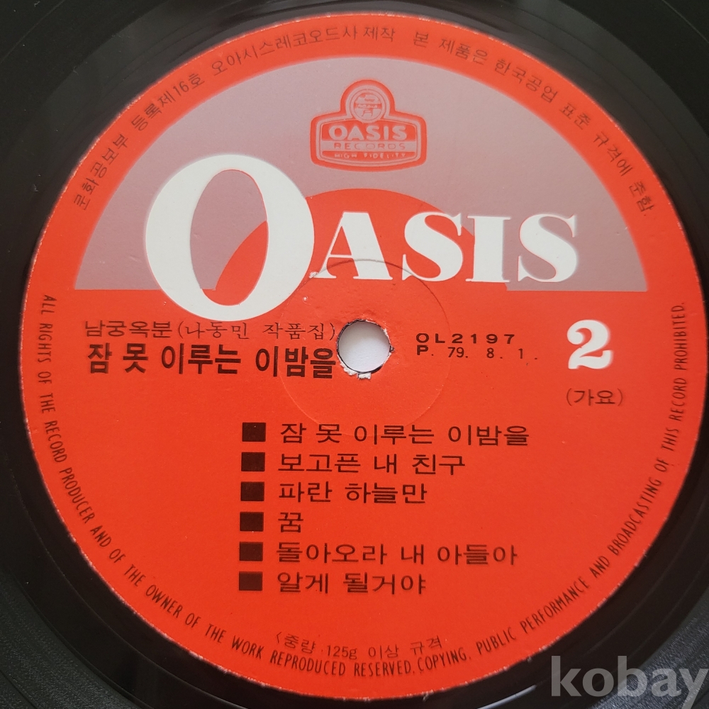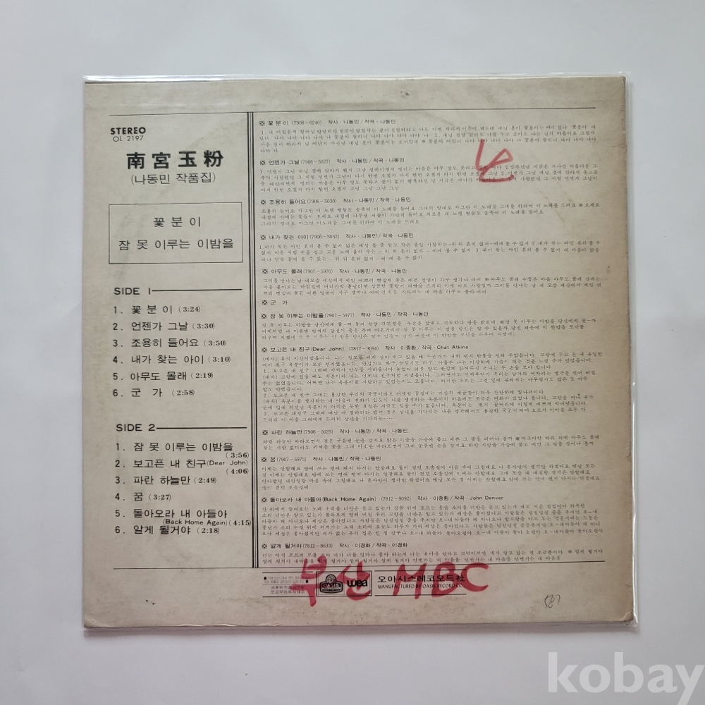 [추억의 희귀 LP 기획전] (남궁옥분) 나동민 작품집 / 잠못이루는 이밤을 ☆ 꽃분이
