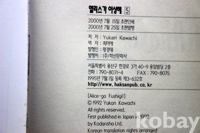 (만화) 앨리스가 이상해 5권 완질 (한국어판) - 유카리 카와치 작품 / 2000년. 학산문화사 발행